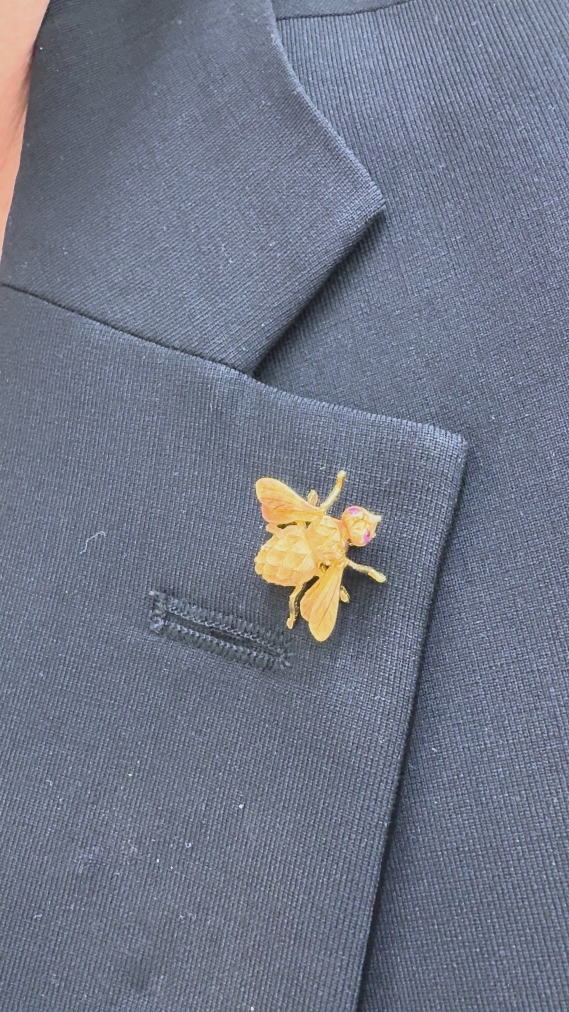 Vintage Herbert Rosenthal 18K Yellow Gold Ruby Eyes Bumble Bee Pin