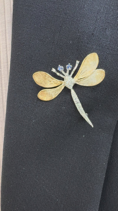 Vintage 14K Yellow and White Gold Sapphire and Diamond Dragonfly Brooch