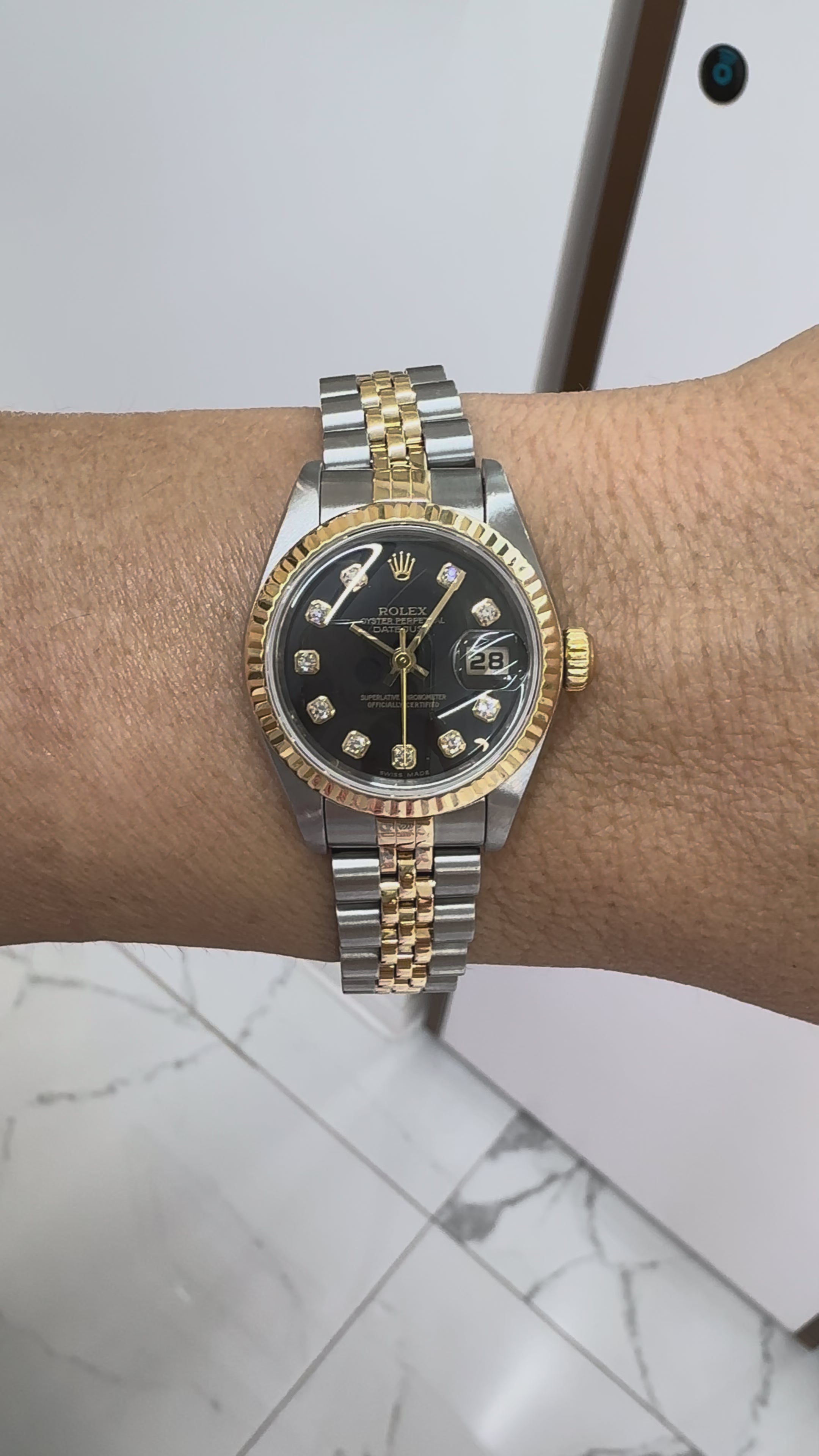 2003 Rolex Lady Datejust 26MM 79173 Black Diamond Jubilee Gold Steel Watch