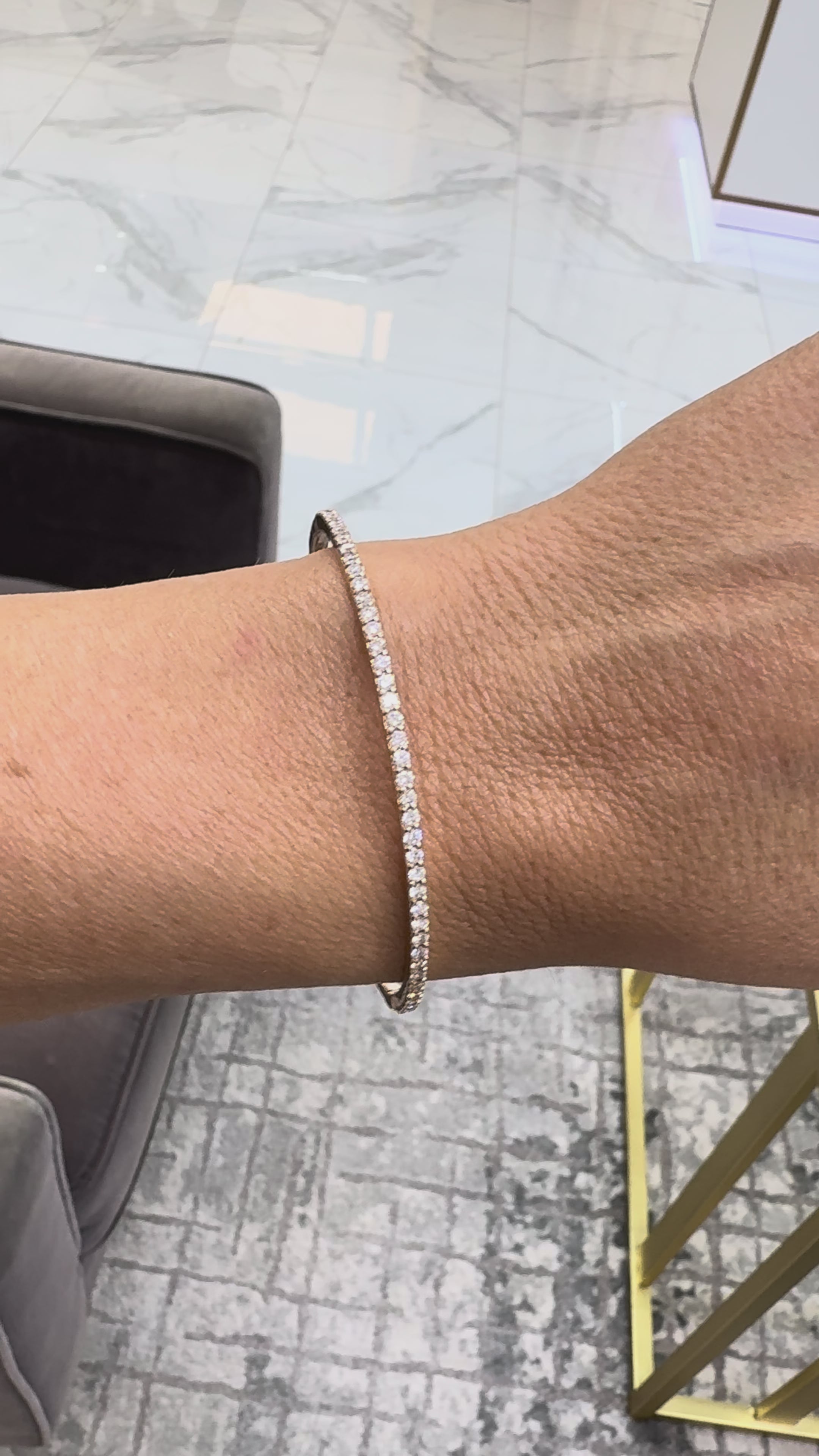 14K Rose Gold Half Eternity Tennis 1.35ct Diamond Bangle Bracelet