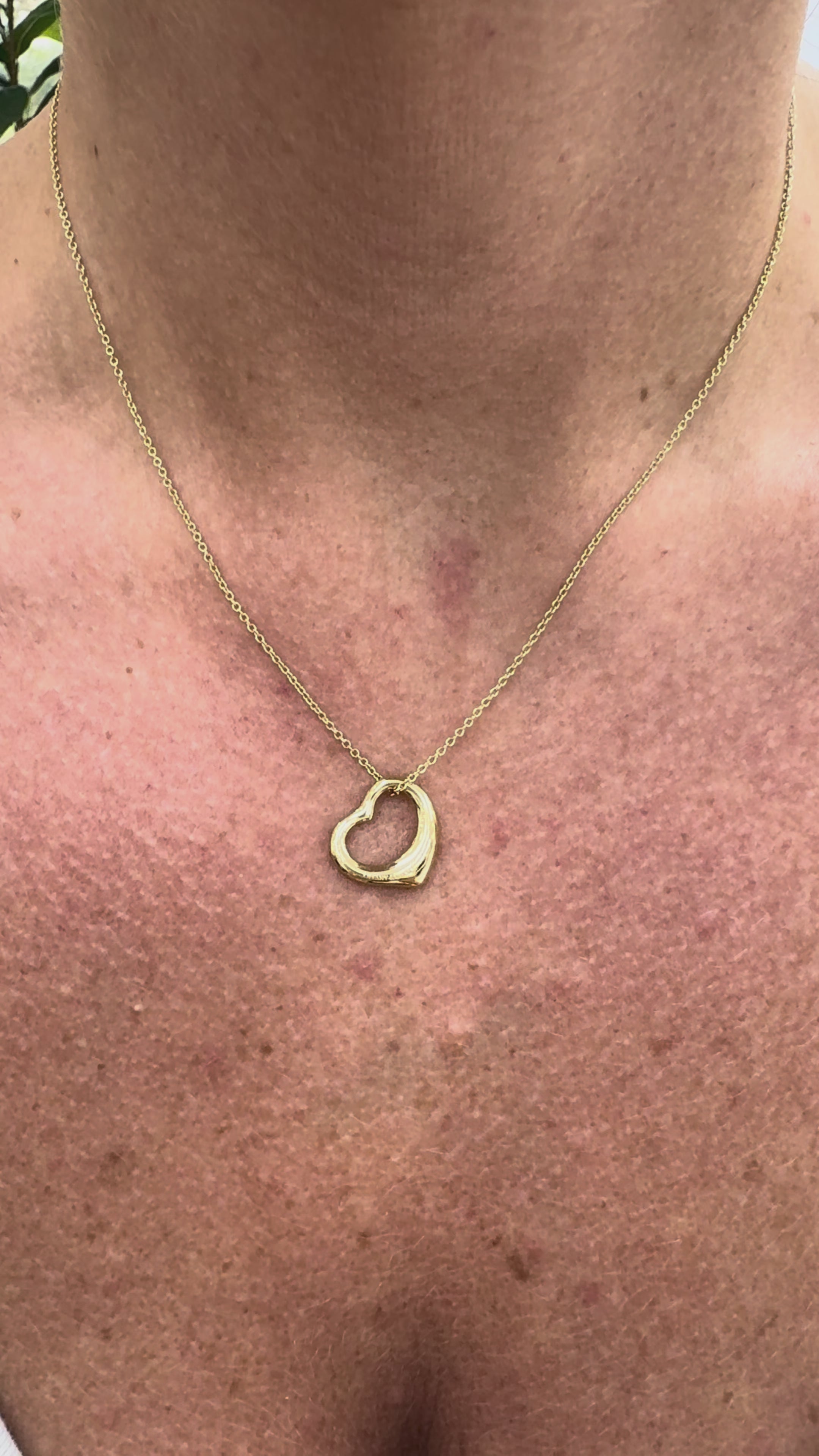 Tiffany & Co. Elsa Peretti 18K Yellow Gold 16MM Open Heart Pendant Necklace