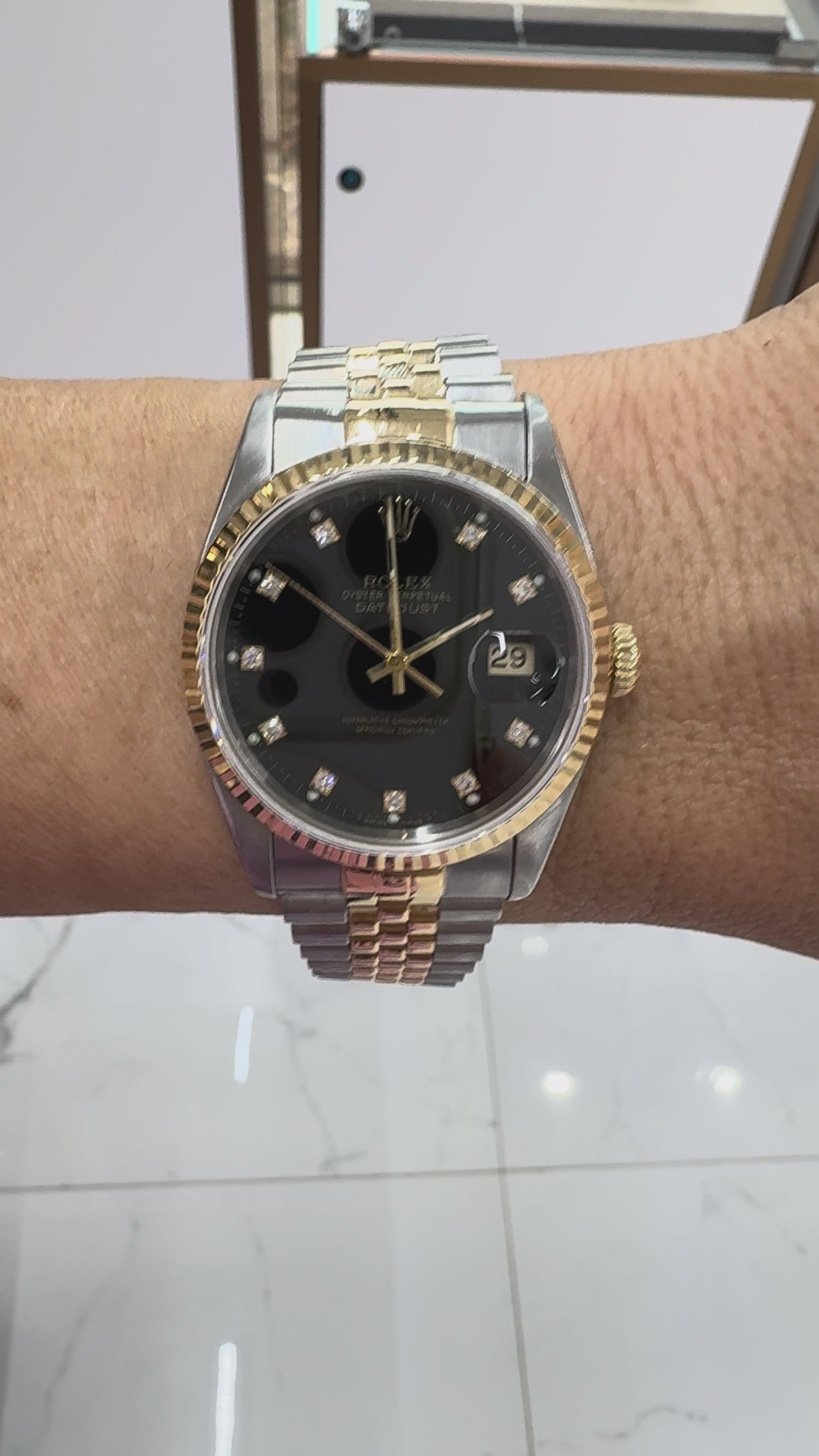 1993 Rolex Datejust 36MM 16233 Black Jubilee Two Tone Yellow Gold Steel Watch