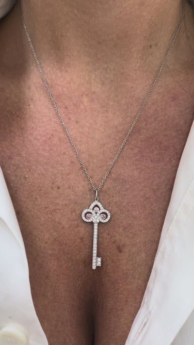 Tiffany & Co. Fleur De Lis Platinum 18K Gold Diamond Key Pendant Necklace