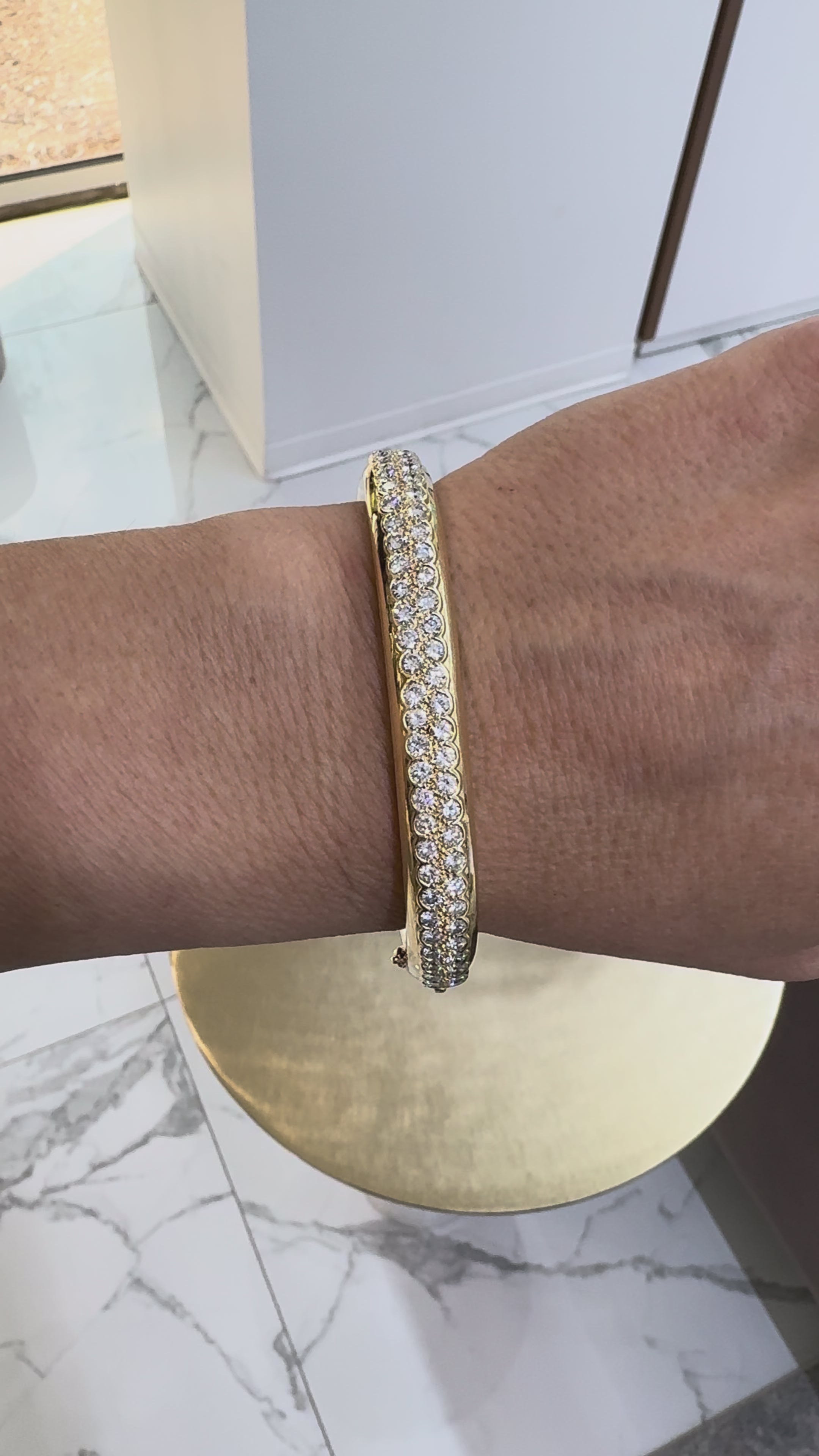 Vintage Swiss 18K Yellow Gold 4.50ct Pave Diamond Hinged Rounded Bangle Bracelet