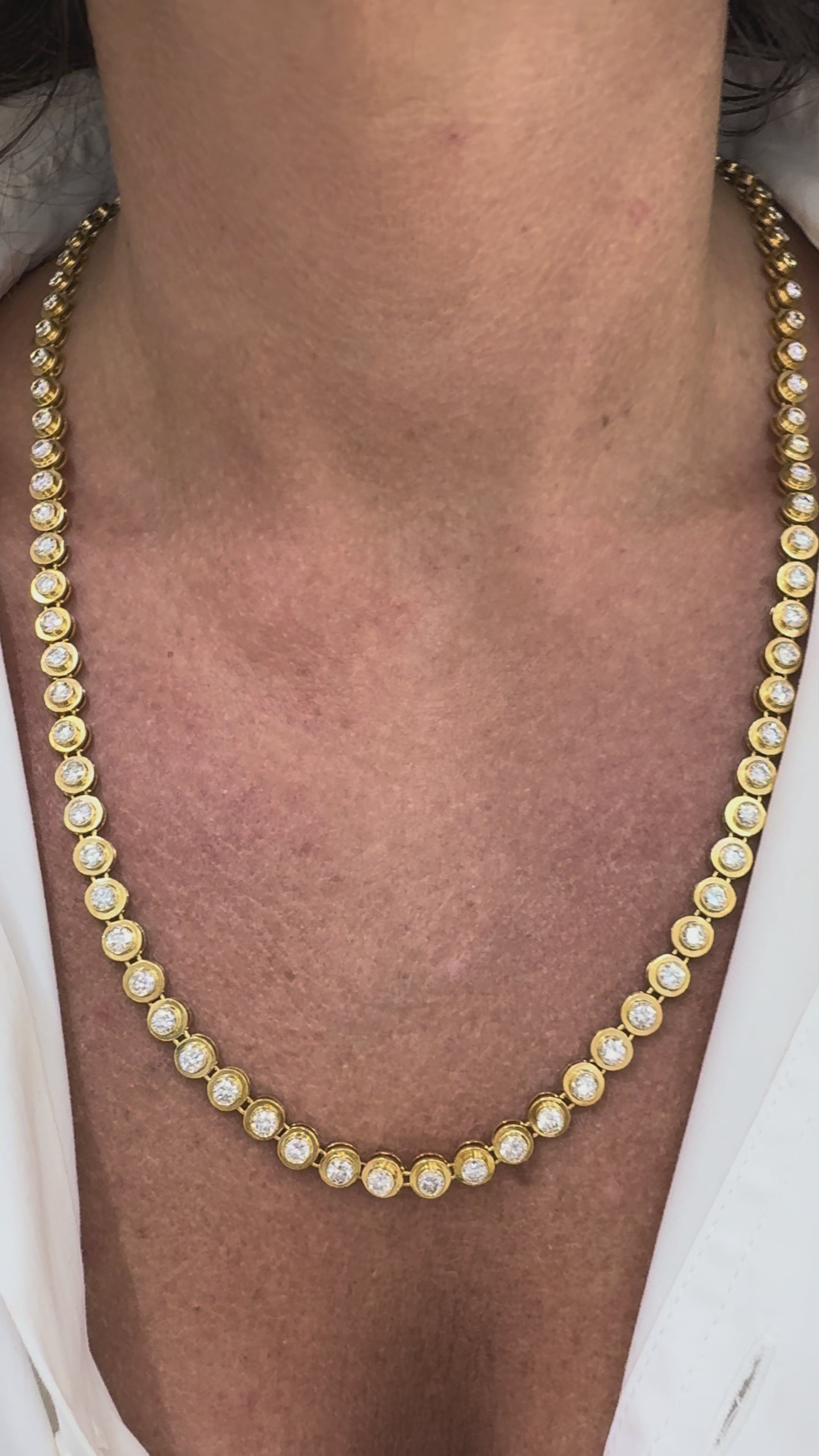 Vintage 18K Yellow Gold Bezel Set 14.57ct Diamond Tribute Tennis Link Necklace