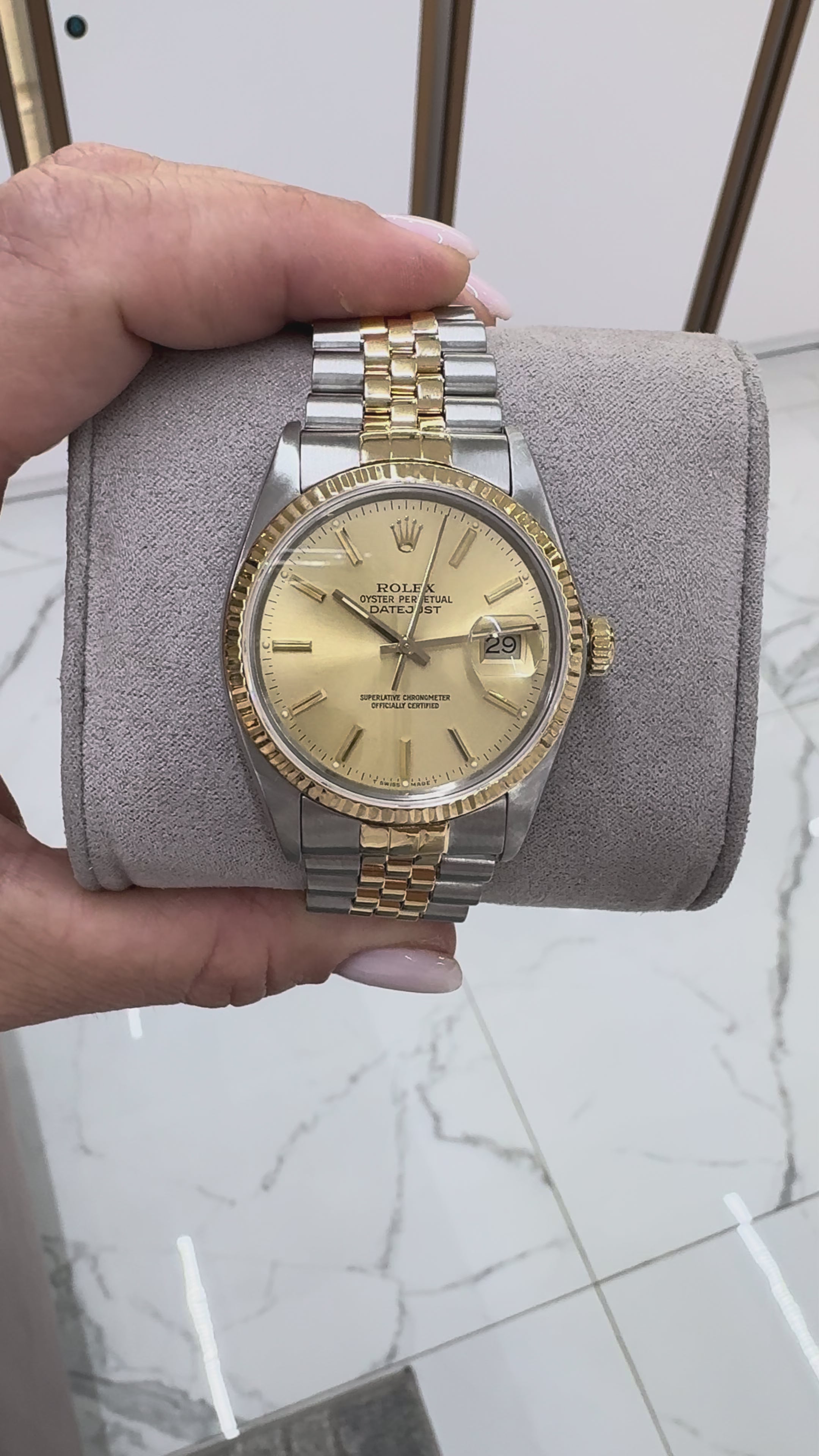 Rolex Datejust 36MM 16013 Gold Dial Jubilee Fluted 18K Yellow Gold Steel Watch