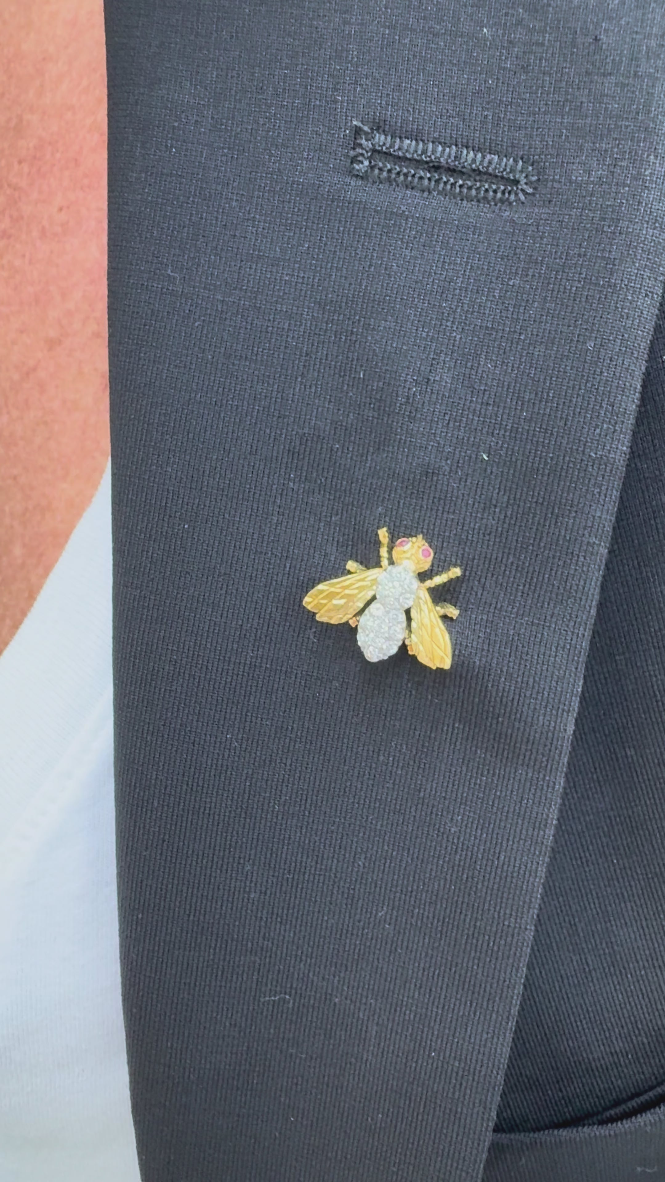 Vintage Herbert Rosenthal 18K Gold Diamond Ruby Eyes Bumble Bee PIN