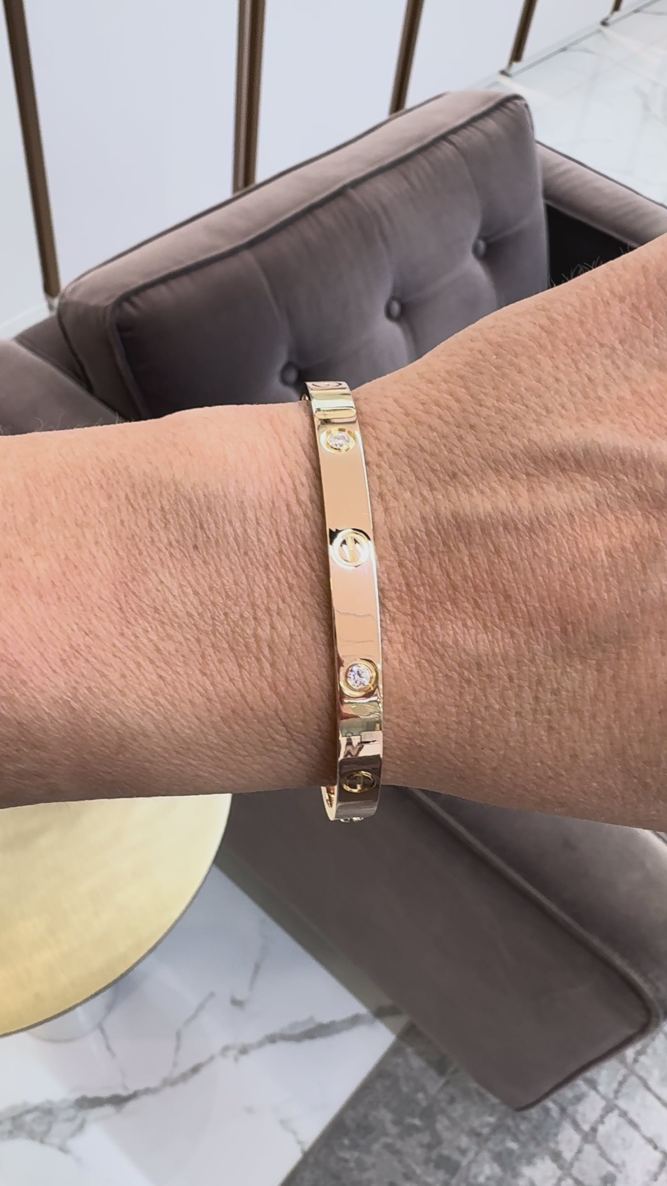 Cartier Love Classic Model 4 Diamonds 18K Rose Gold Bangle Bracelet