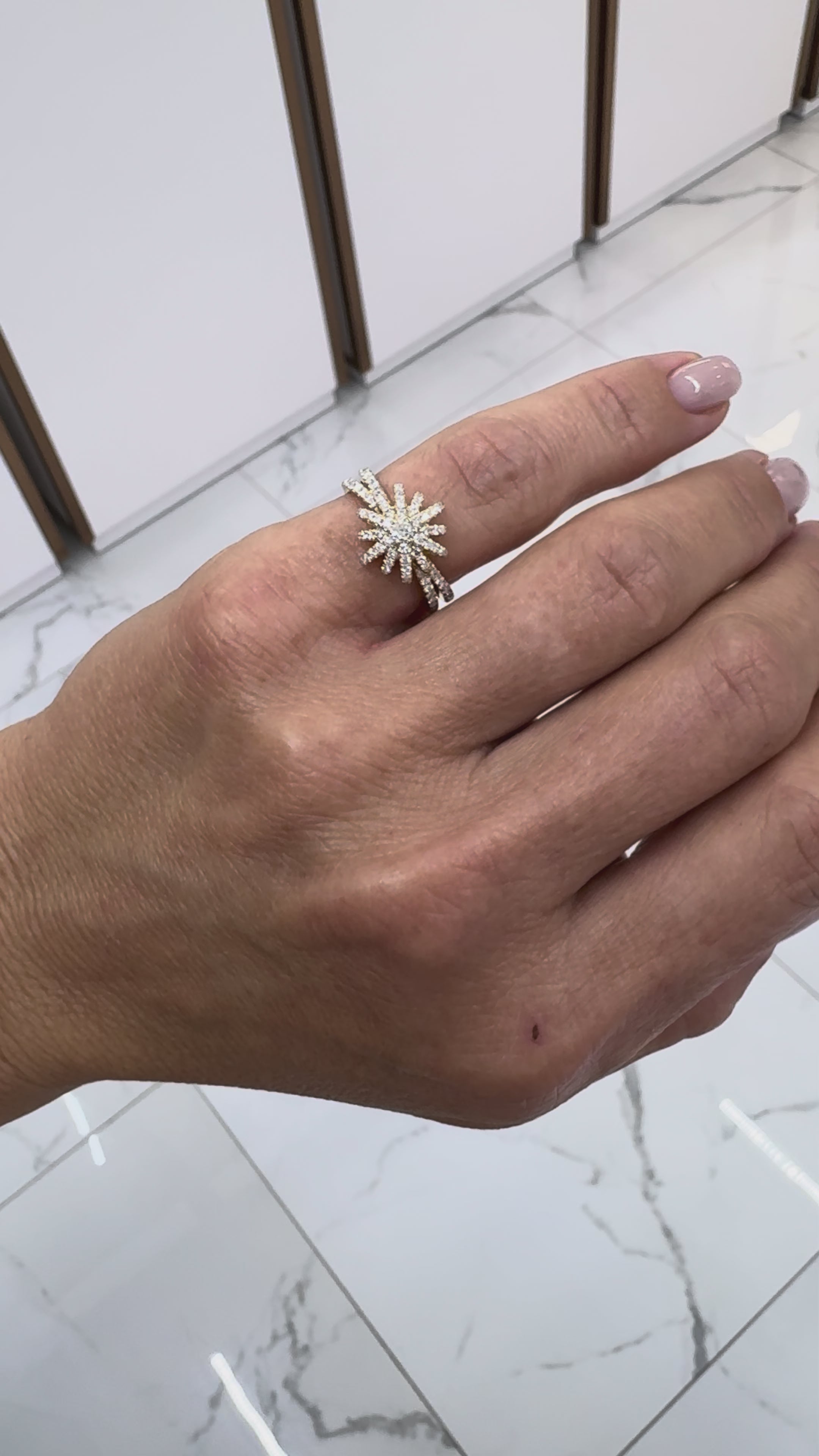 David Yurman 18K Diamond Starburst Ring 20MM Motif Pave Diamond Cocktail Ring