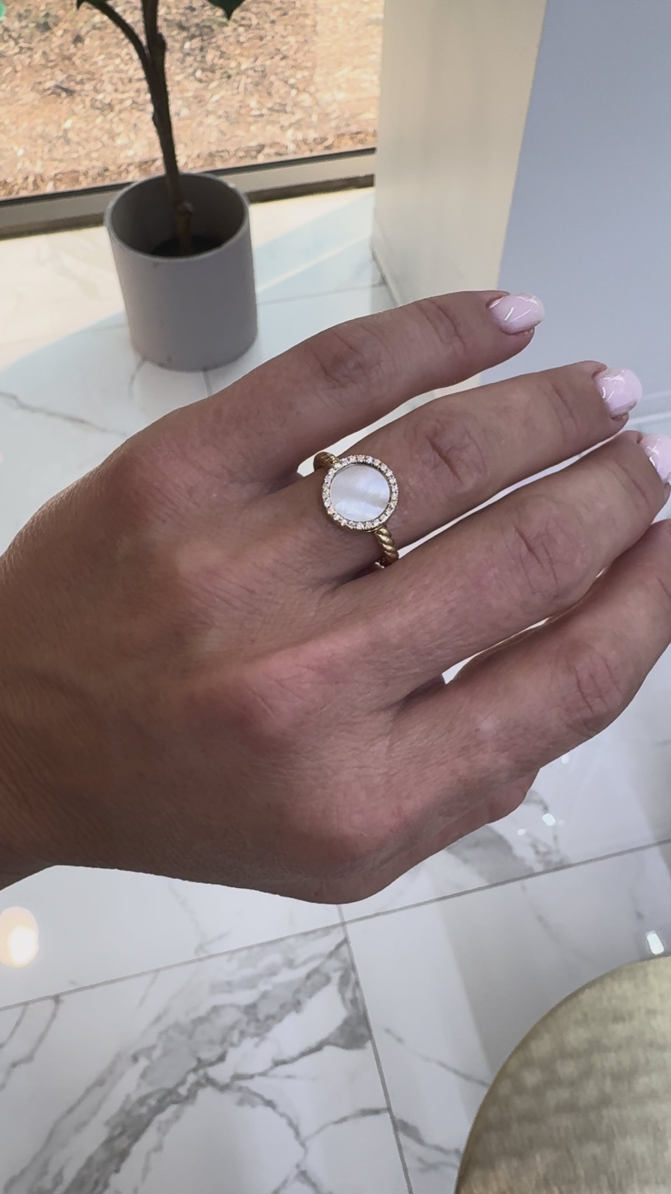 David Yurman Dy Elements 18K Yellow Gold Diamond Mother of Pearl Cocktail Ring