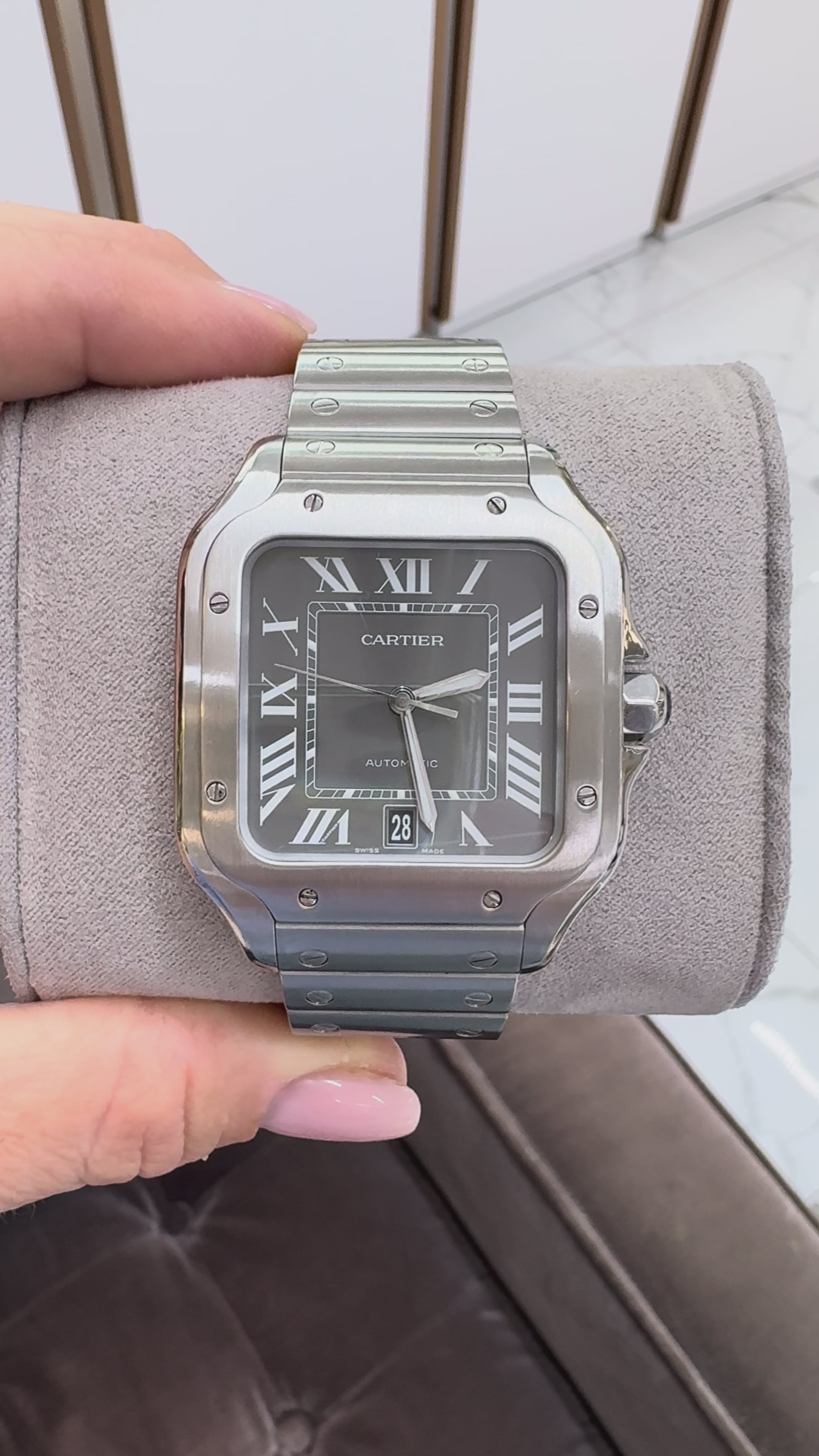 Cartier Santos 39.8mm 4072 / WSSA0037 Gray Roman Dial Steel Automatic Watch