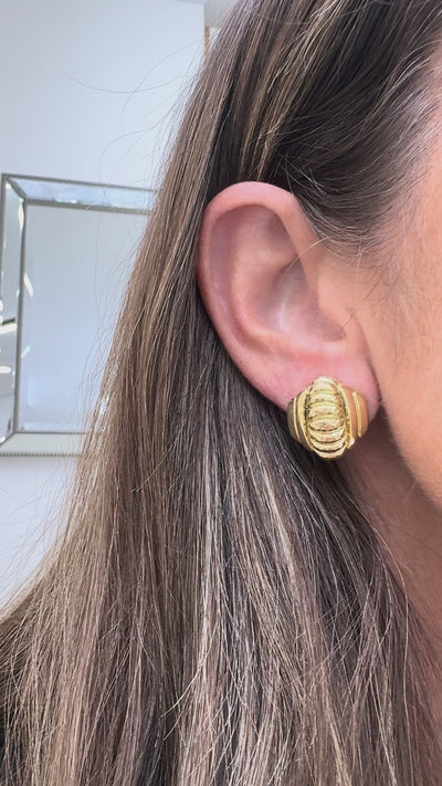 Vintage David Webb 18K Yellow Gold Hammered Dome Clip Earrings