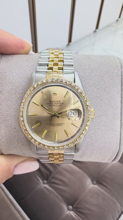 Rolex Datejust 36MM 16233 Bronze Diamond Bezel Jubilee Gold Steel Watch