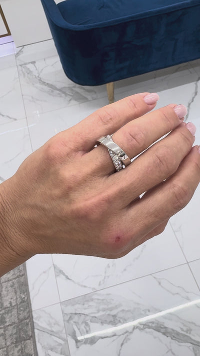 Ladies Cartier Paris Nouvelle Vague 18K White Gold Diamond Crossover Band Ring