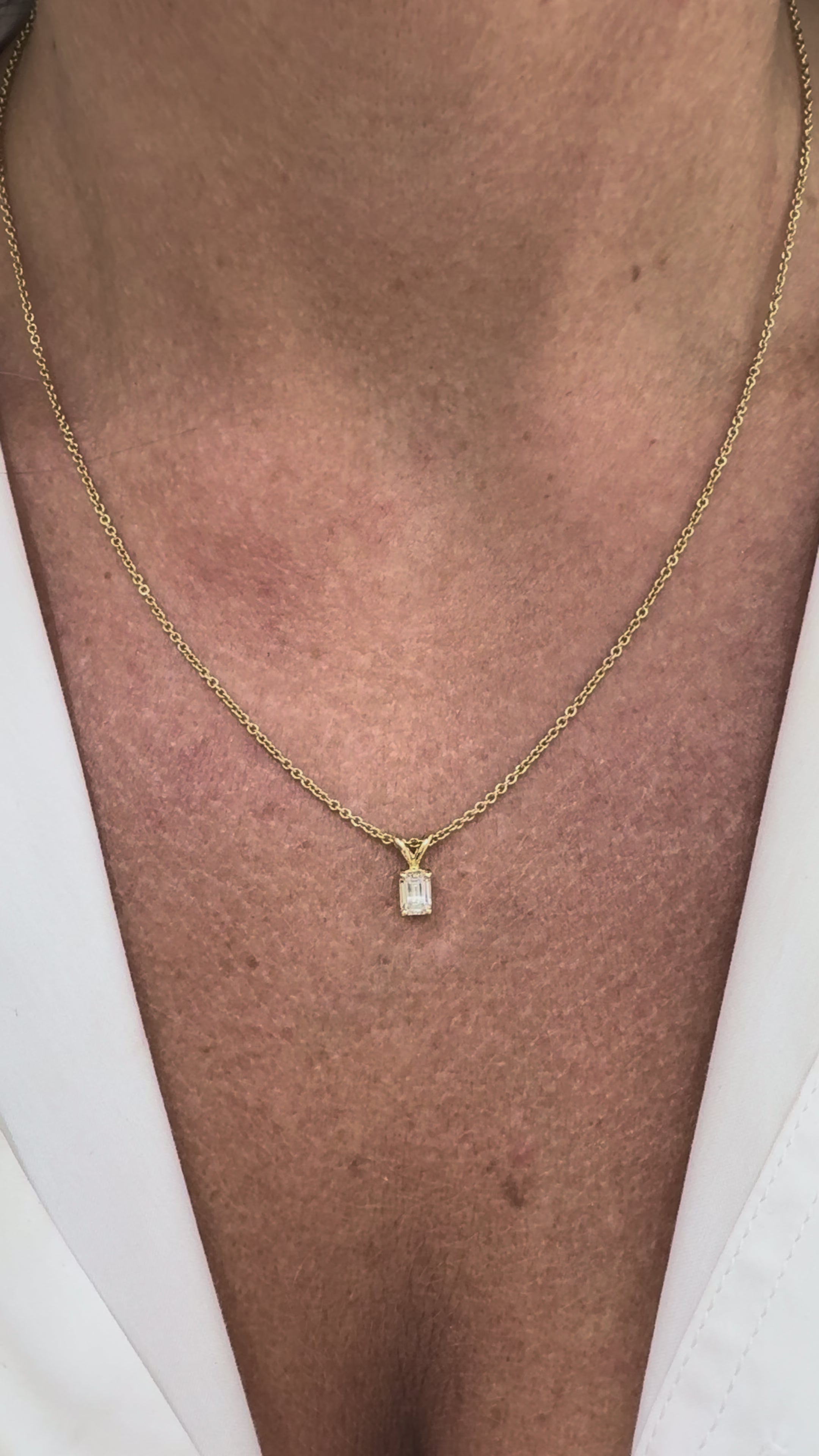 Ladies 18K Yellow Gold GIA 0.50ct Emerald Cut 4 Prong Solitaire Pendant Necklace