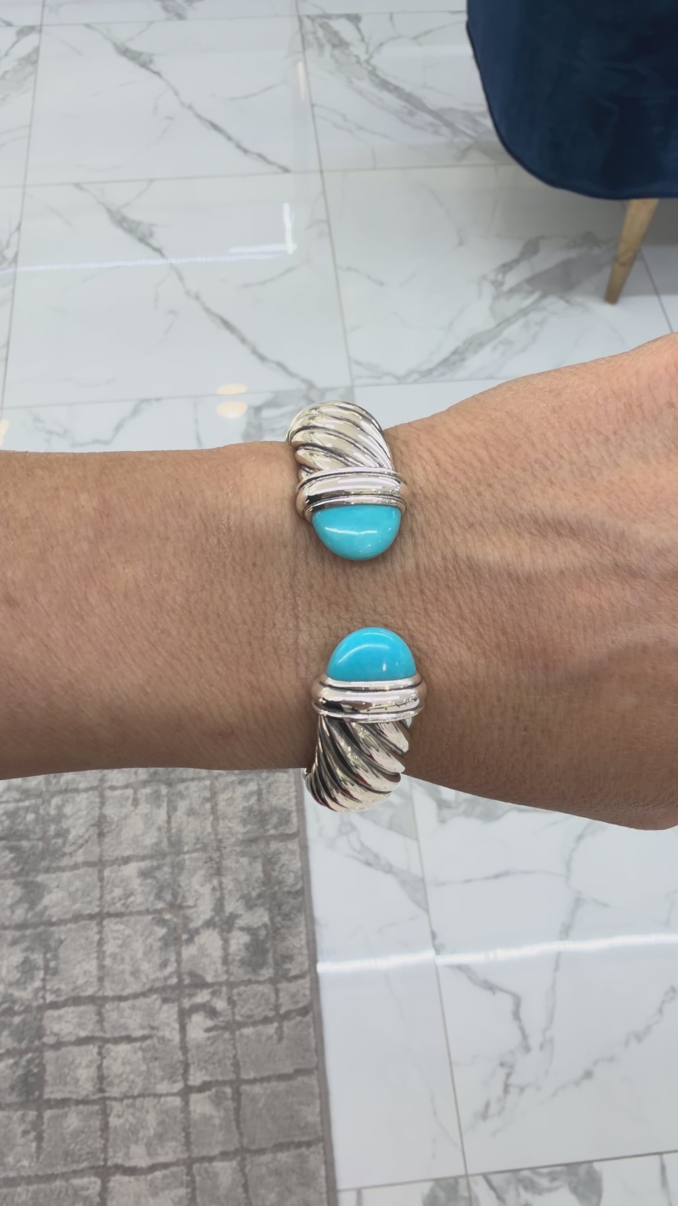 David Yurman Sculpted 925 Silver Turquoise Cable Waverly Cuff Bangle Bracelet
