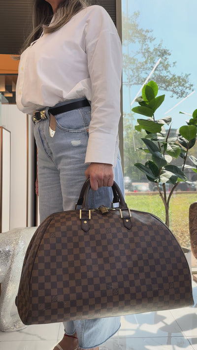 Louis Vuitton Damier Ebene Brown Canvas Ribera GM Satchel Weekender Handbag
