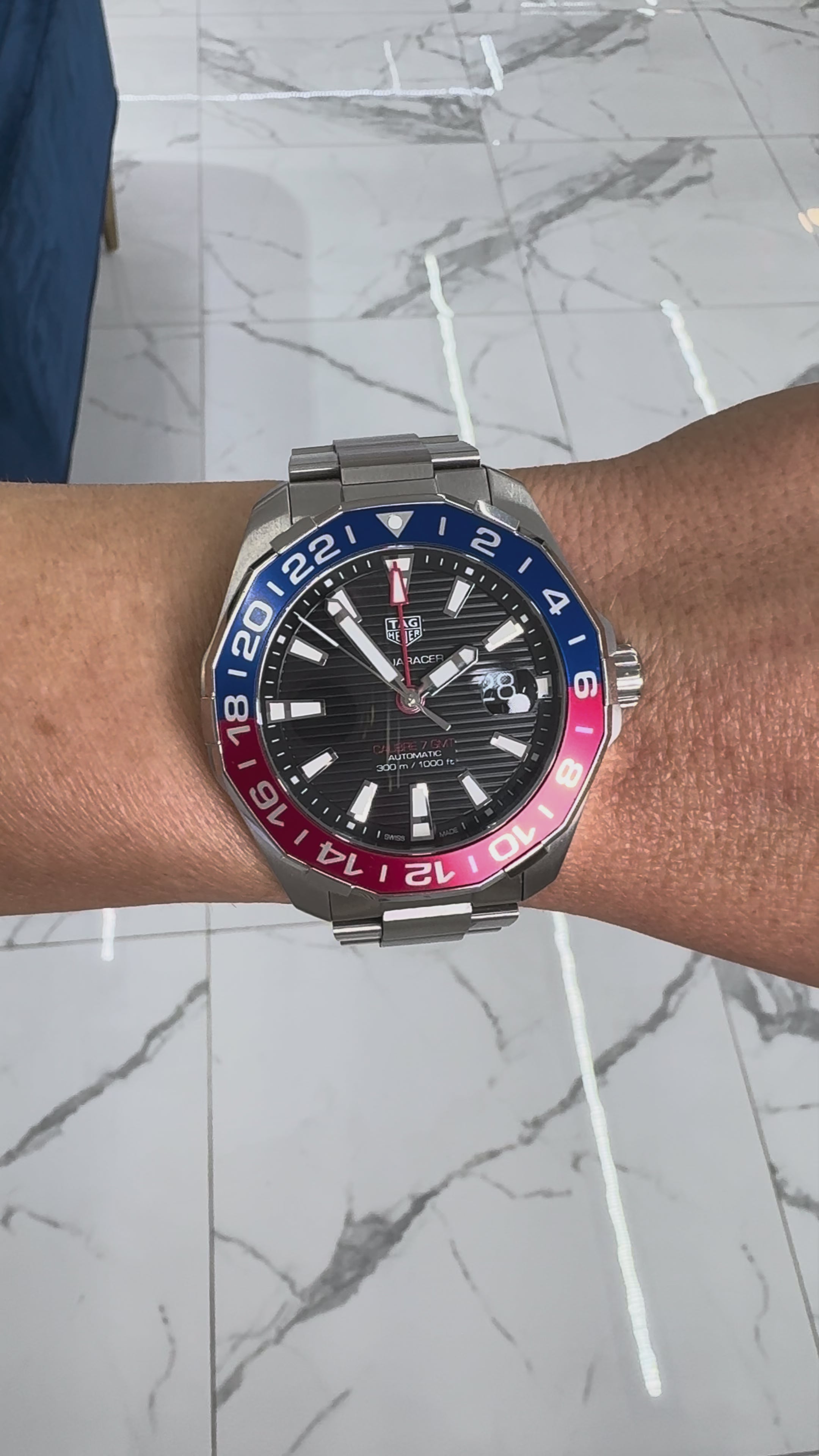 TAG HEUER Aquaracer GMT 43MM WAY201F.BA0927 Pepsi 300M Steel Automatic Watch