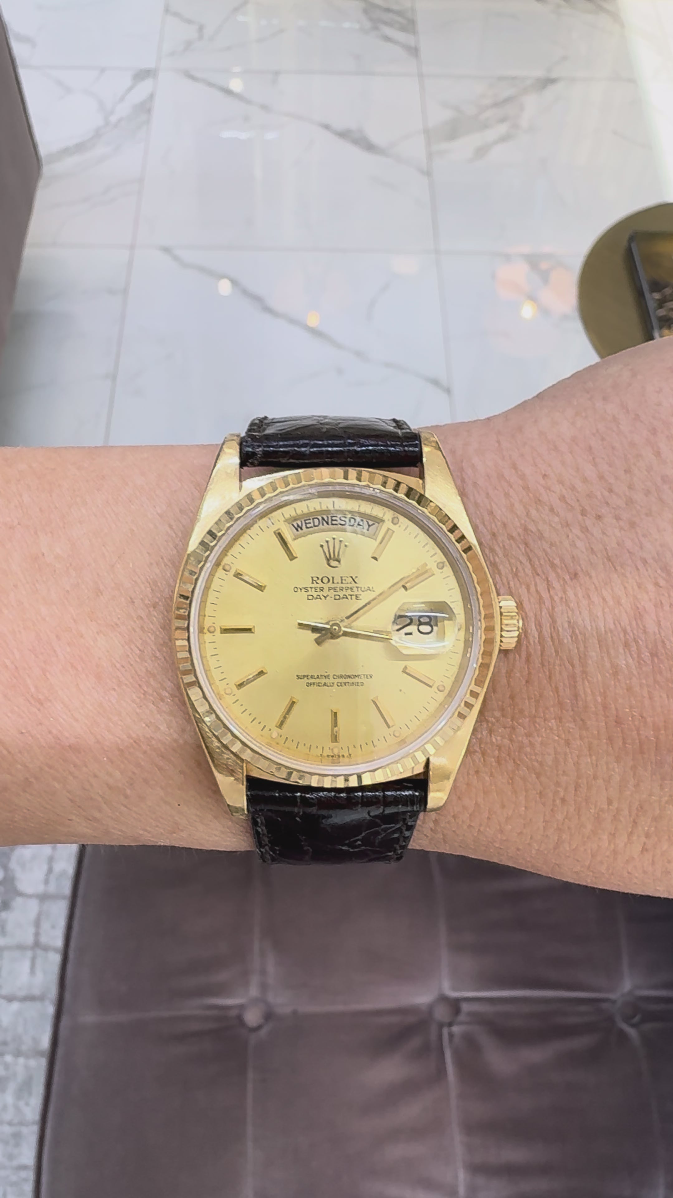 1980 Rolex Day Date 36MM 18038 President Deep Cherry Strap 18K Yellow Gold Watch