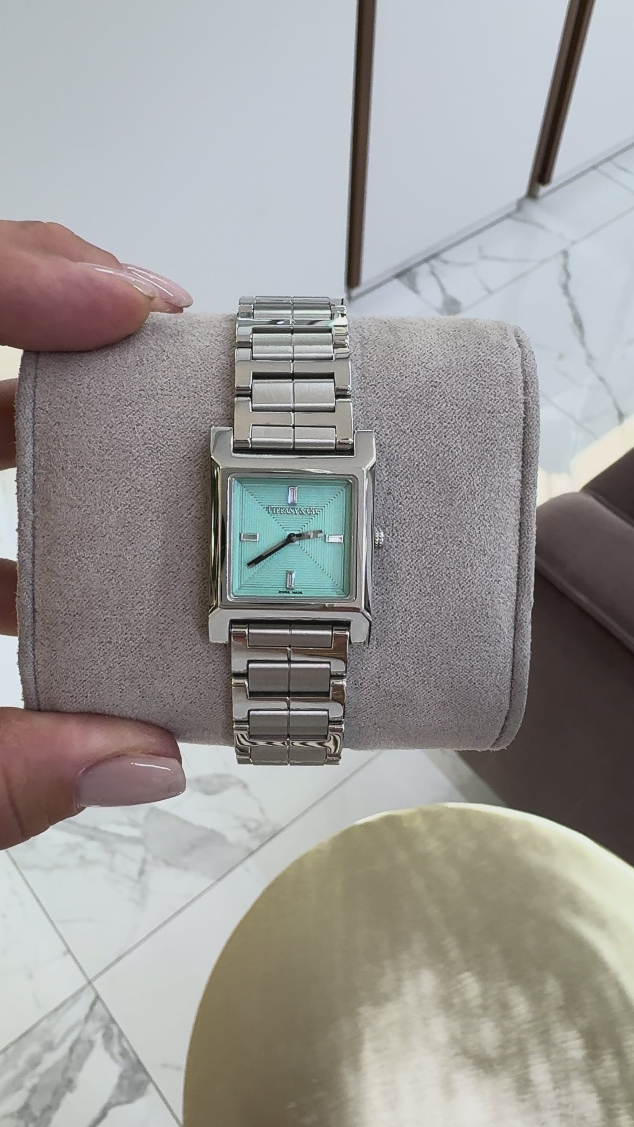 Ladies stainless steel diamond Swiss-made wristwatch with original box and papers. Engraved with "St Steel". The "TIFFANY & CO." trademark (or hallmark) can also be found on the item.