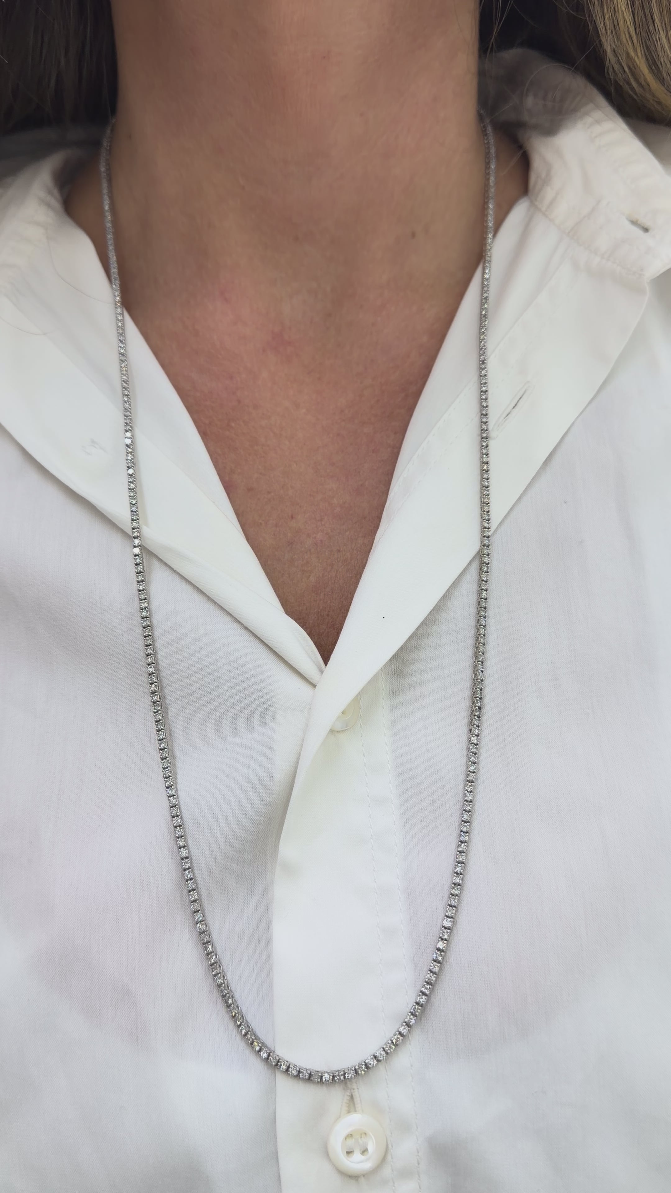 18K White Gold 7.00ct Round Diamond 4 Prongs Tennis Chain Matinee Necklace