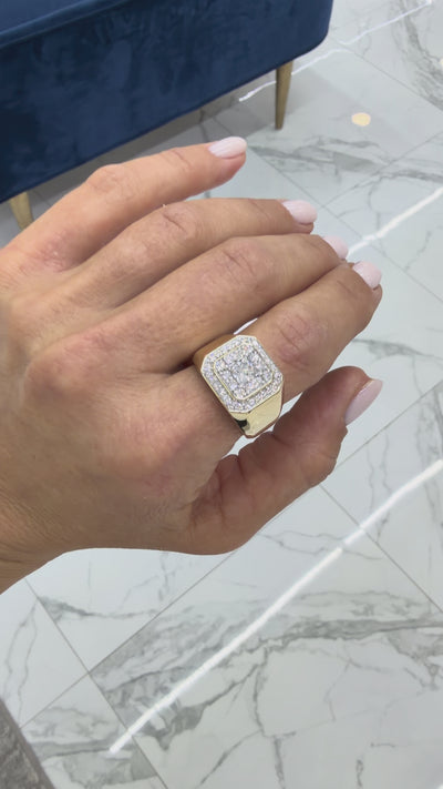 Men’s 10K Yellow Gold 1.82ct Princess & Round Halo Lab Grown Diamond Band Ring