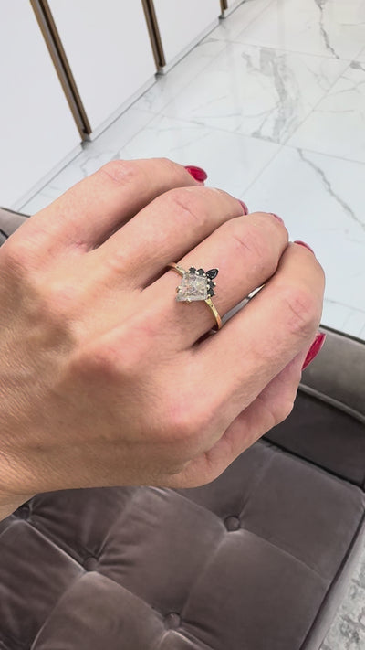 VENVS ladies polished 14K rose gold, KITE SALT & PEPPER Diamond and Black Diamonds cocktail ring with a soft-square shank. Engraved with "14K". The "VENVS " trademark (or hallmark) can also be found on the item. In excellent condition.