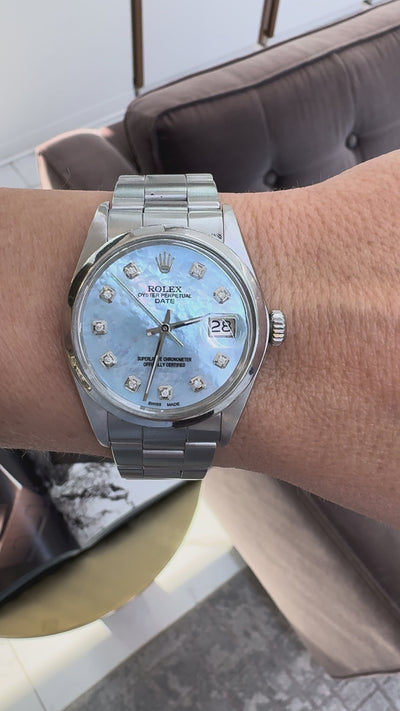 Rolex Oyster Perpetual Date 34MM 1501 Mop Diamond Dial Oyster Steel Watch