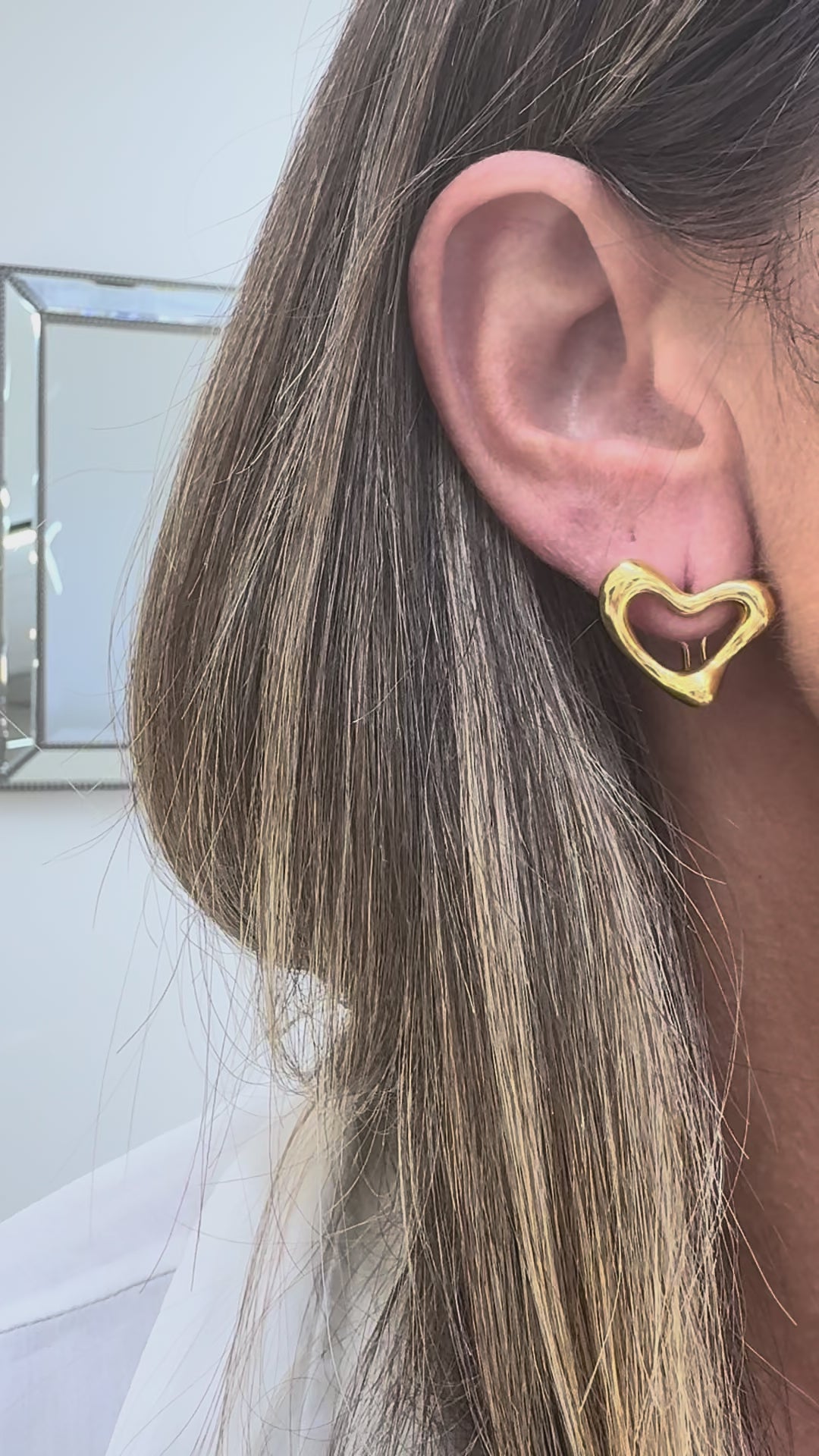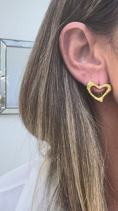 Tiffany & Co. Elsa Peretti 18K Yellow Gold Large Open Heart Clip on Earrings