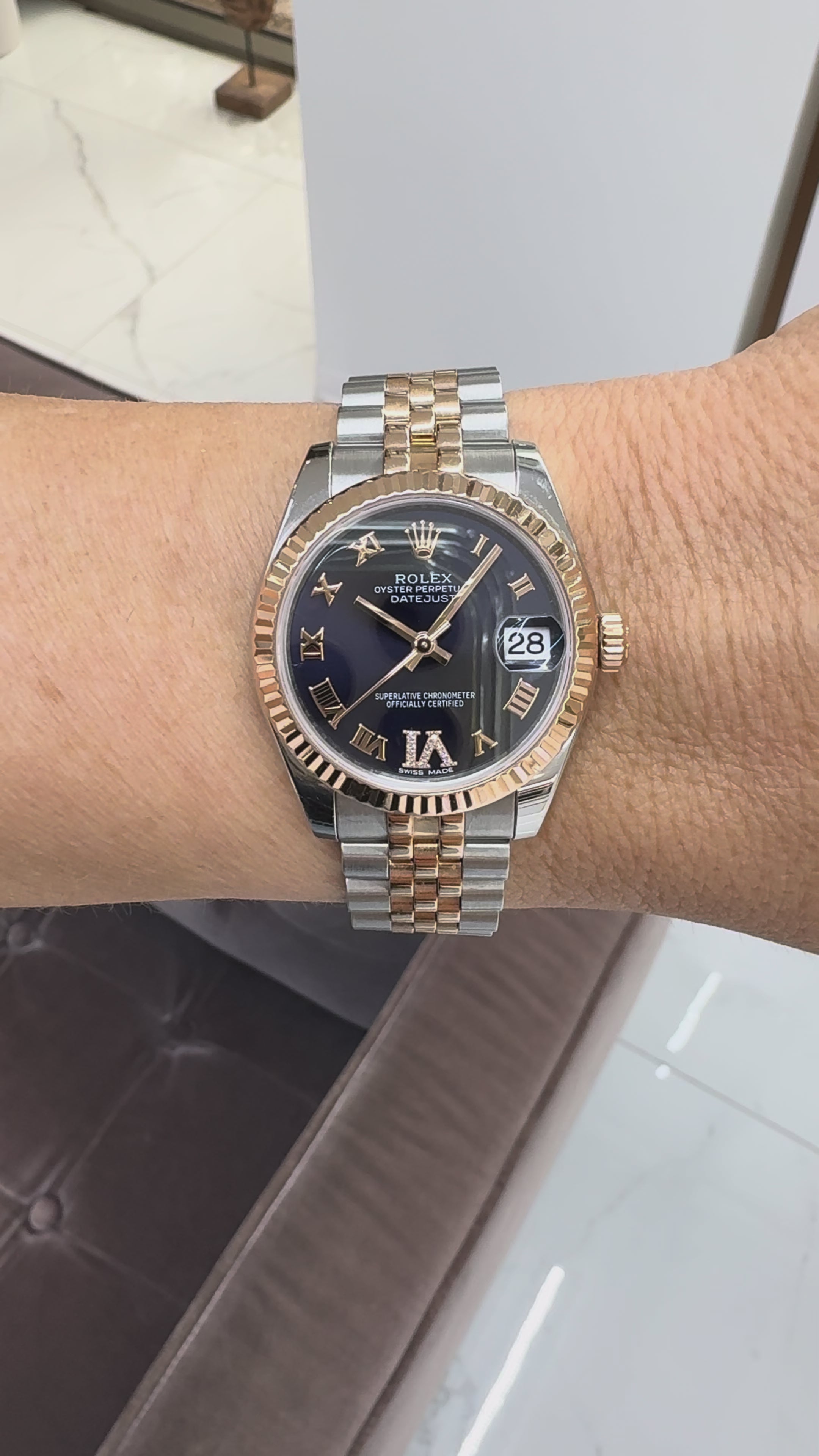 Rolex Datejust 31MM 178271 Purple Roman Pave Diamond Jubilee Gold Steel Watch