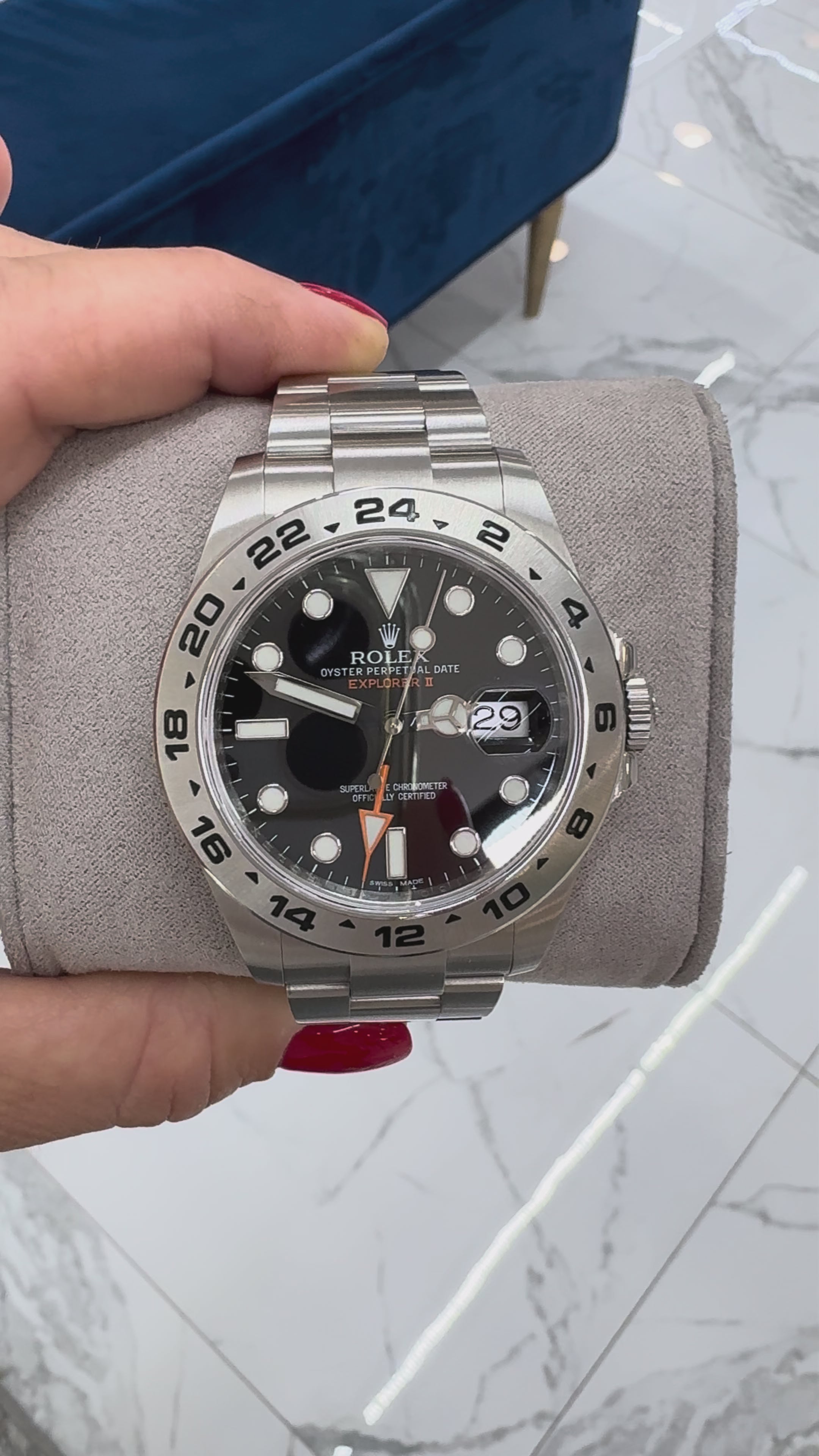 2015 Rolex Explorer II 42MM 216570 Orange Black Gmt Oyster Steel Travel Watch