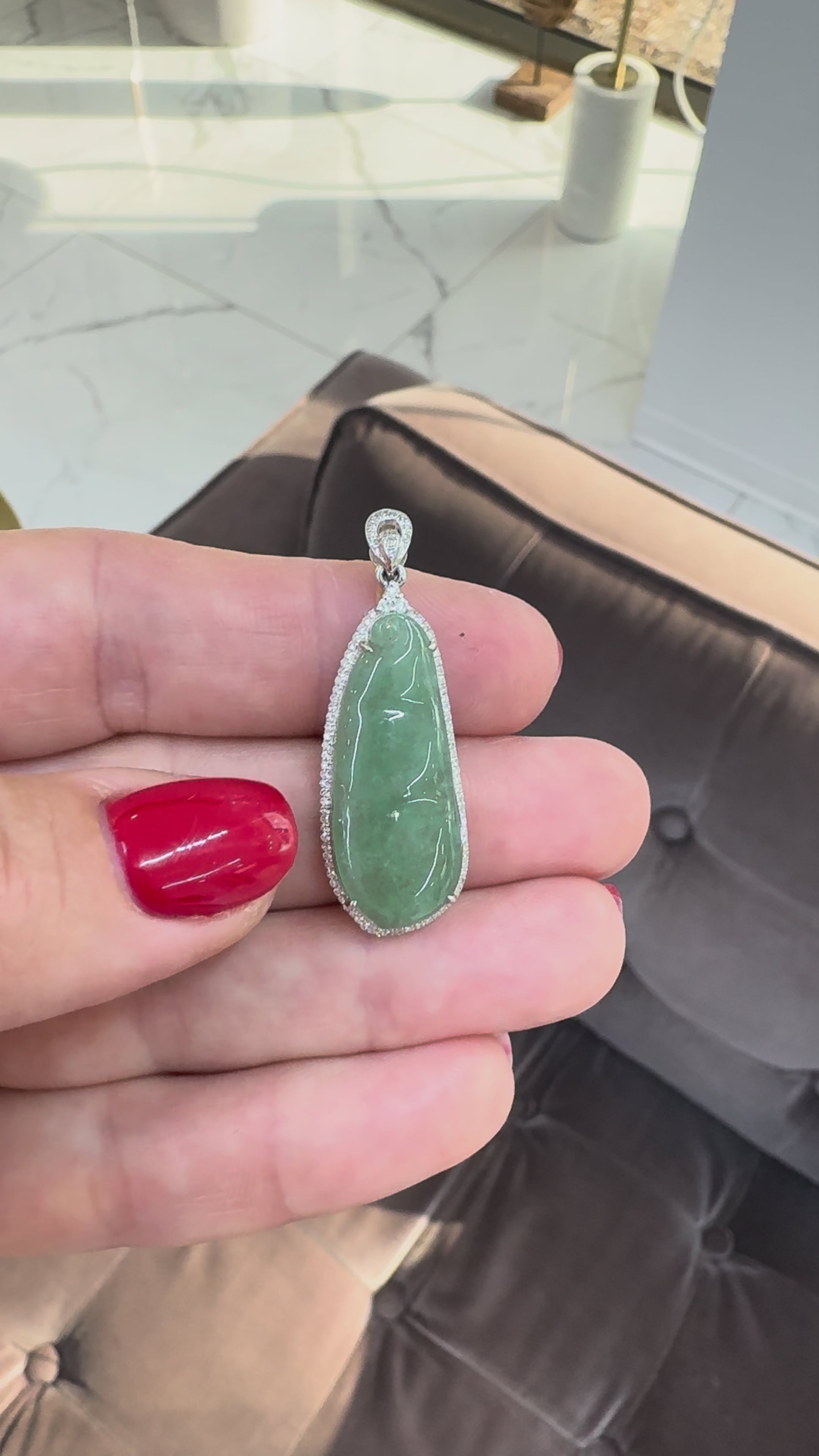 18K White Gold 8.35ct Green Myanmar Jadeite Jade Diamond Charm Pendant