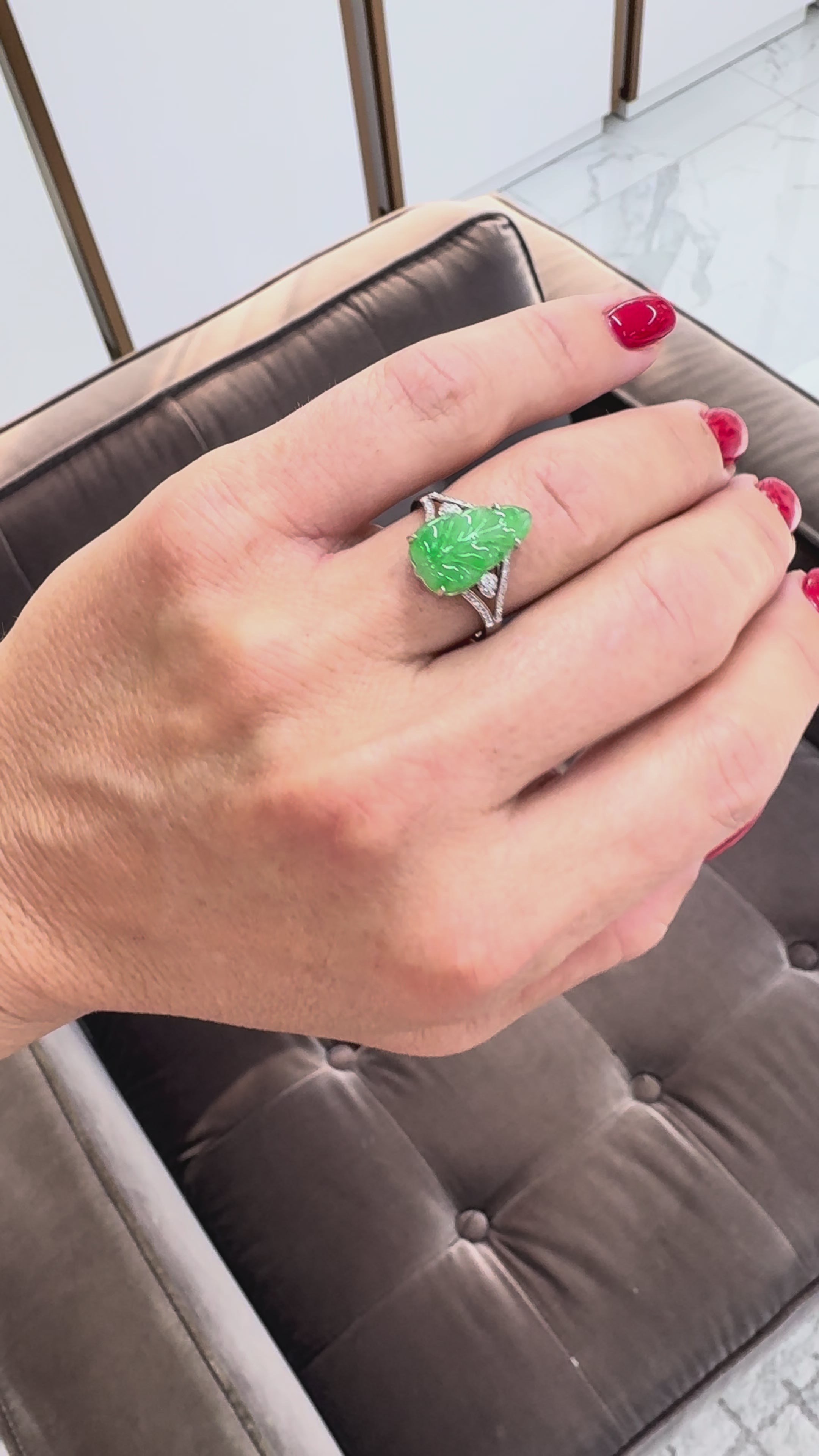 18K White Gold 2.70ct Delicate Green Icy Jadeite Jade Diamond Cocktail Ring