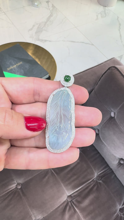 18K White Gold 18.40ct Blue Glutinous Jadeite Jade Diamond Jade Charm Pendant