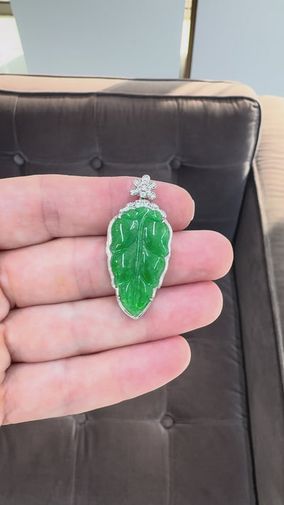 18K White Gold 9.80ct Green Burmese Jadeite Jade Diamond Charm Pendant