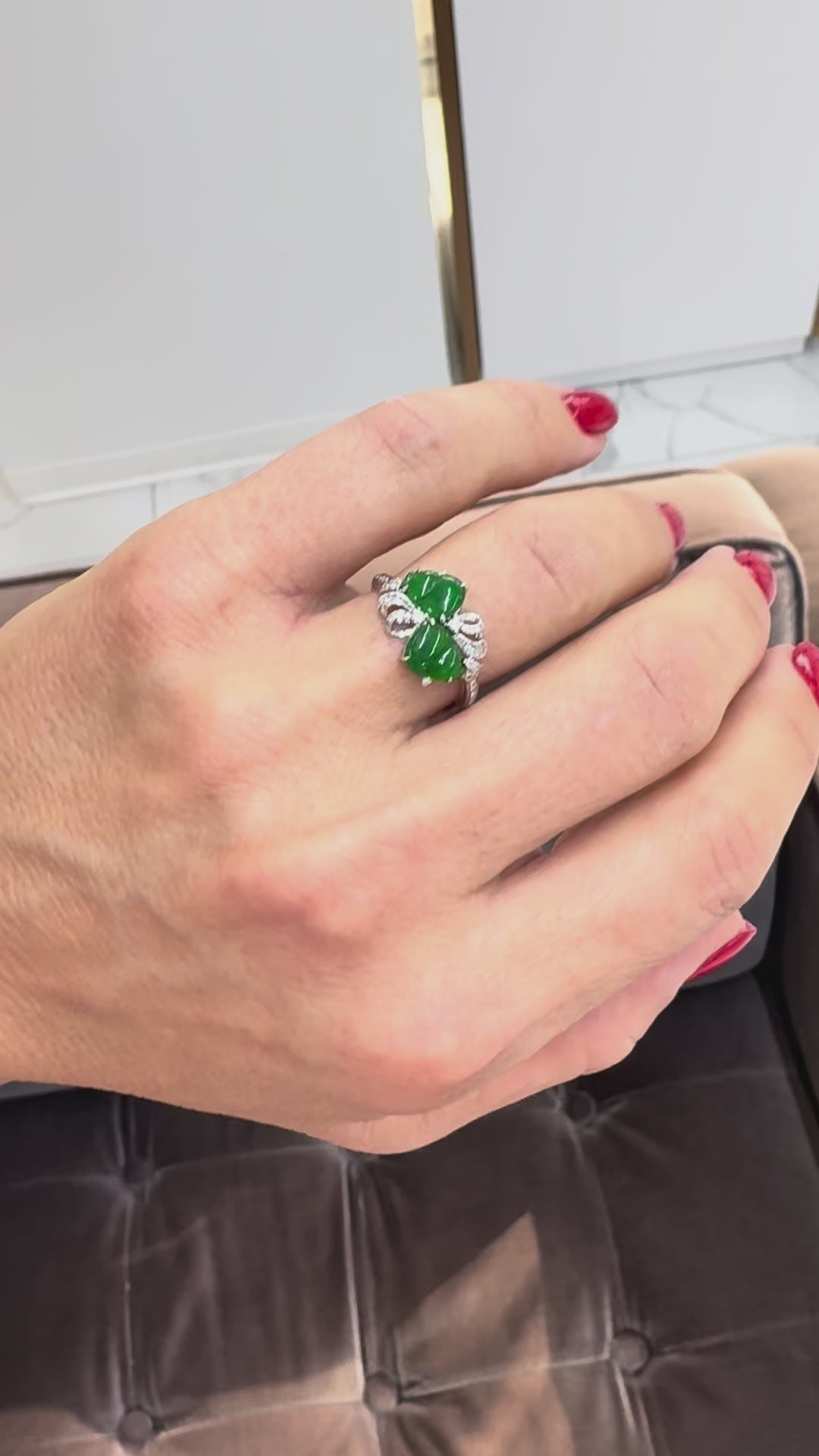 18K White Gold 1.30ct Delicate Green Icy Jadeite Jade Diamond Cocktail Ring