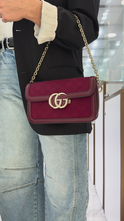 Gucci GG GO Small Bordeaux Gold Hardware Shoulder Bag