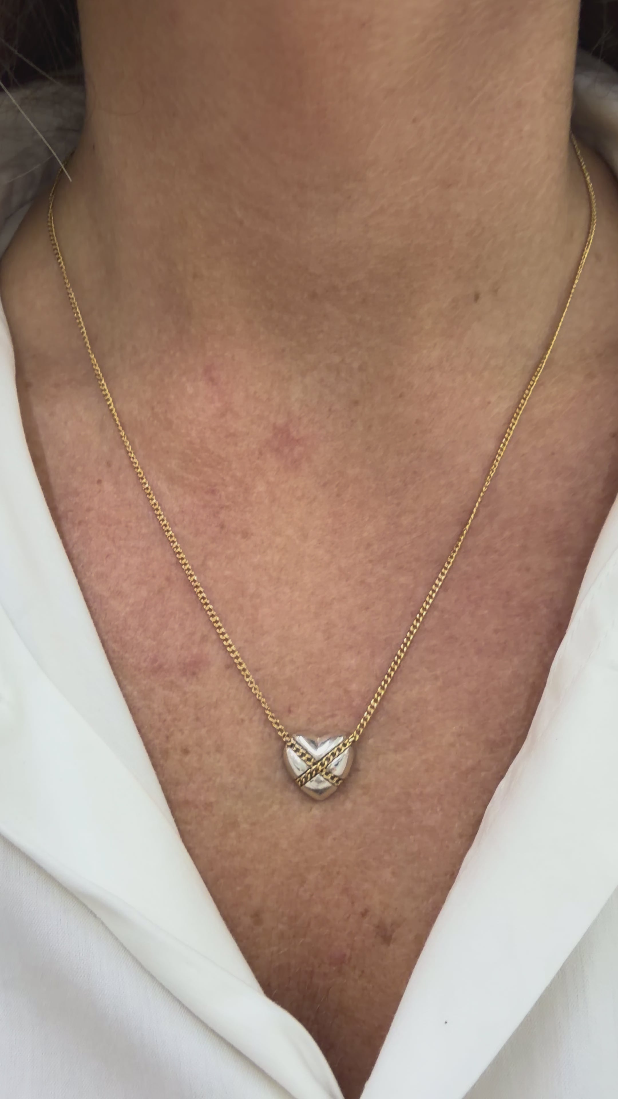 Tiffany & Co. Cross My Heart 18K Yellow Gold Silver Two-Tone Pendant Necklace