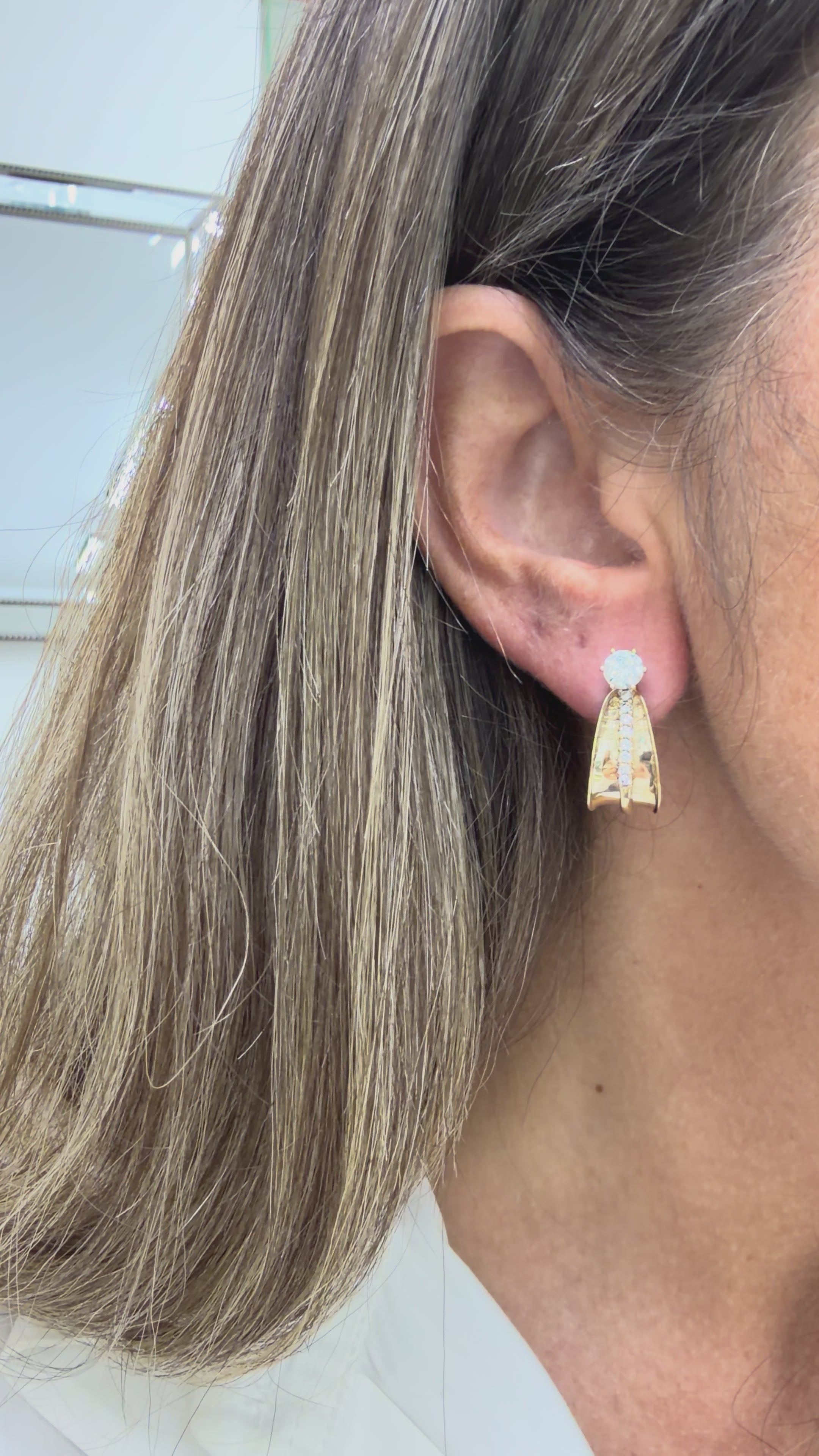 Lady's 14K yellow gold diamond vintage clip-on huggy-style stud, dangle hoop screw-on earrings. In excellent condition.