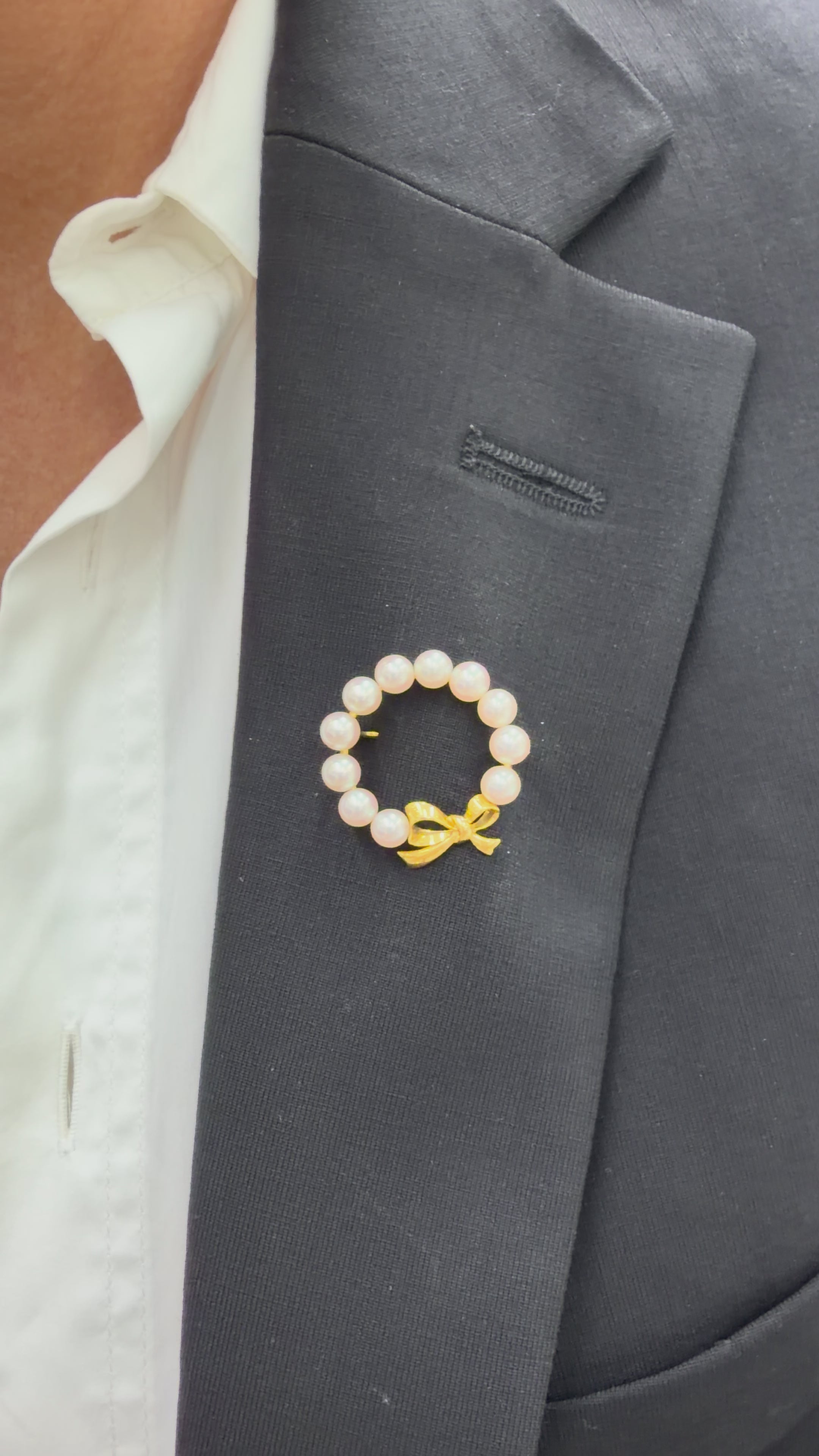 Vintage Mikimoto 18K Yellow Gold Pearl Wreath Brooch