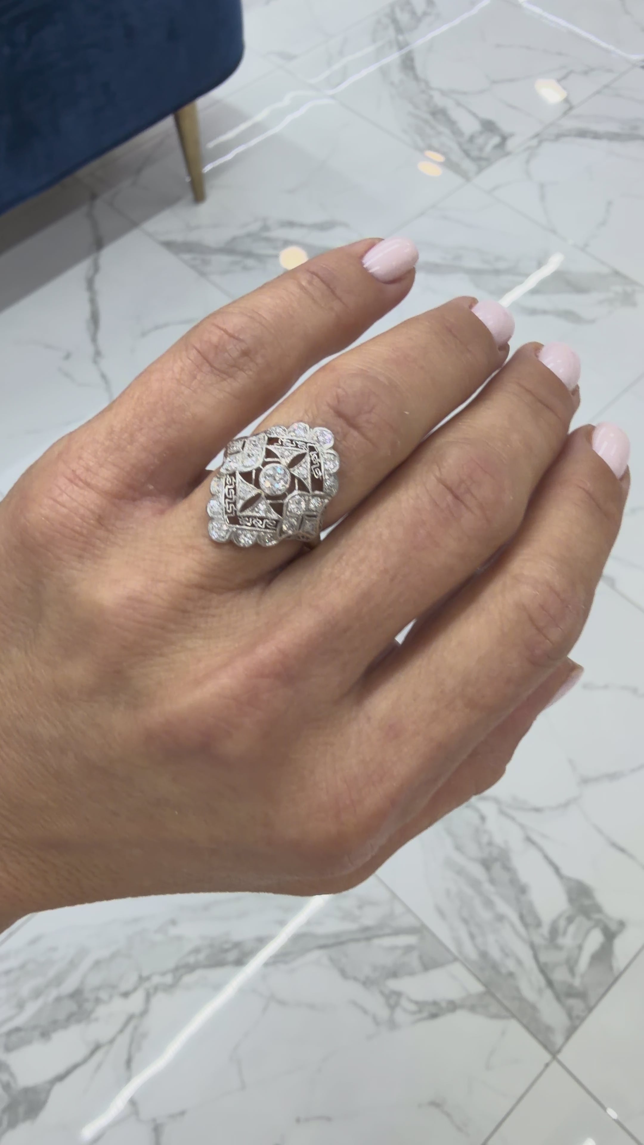 Antique Edwardian Platinum 14K White Gold 1.09ct Diamond Filigree Cocktail Ring