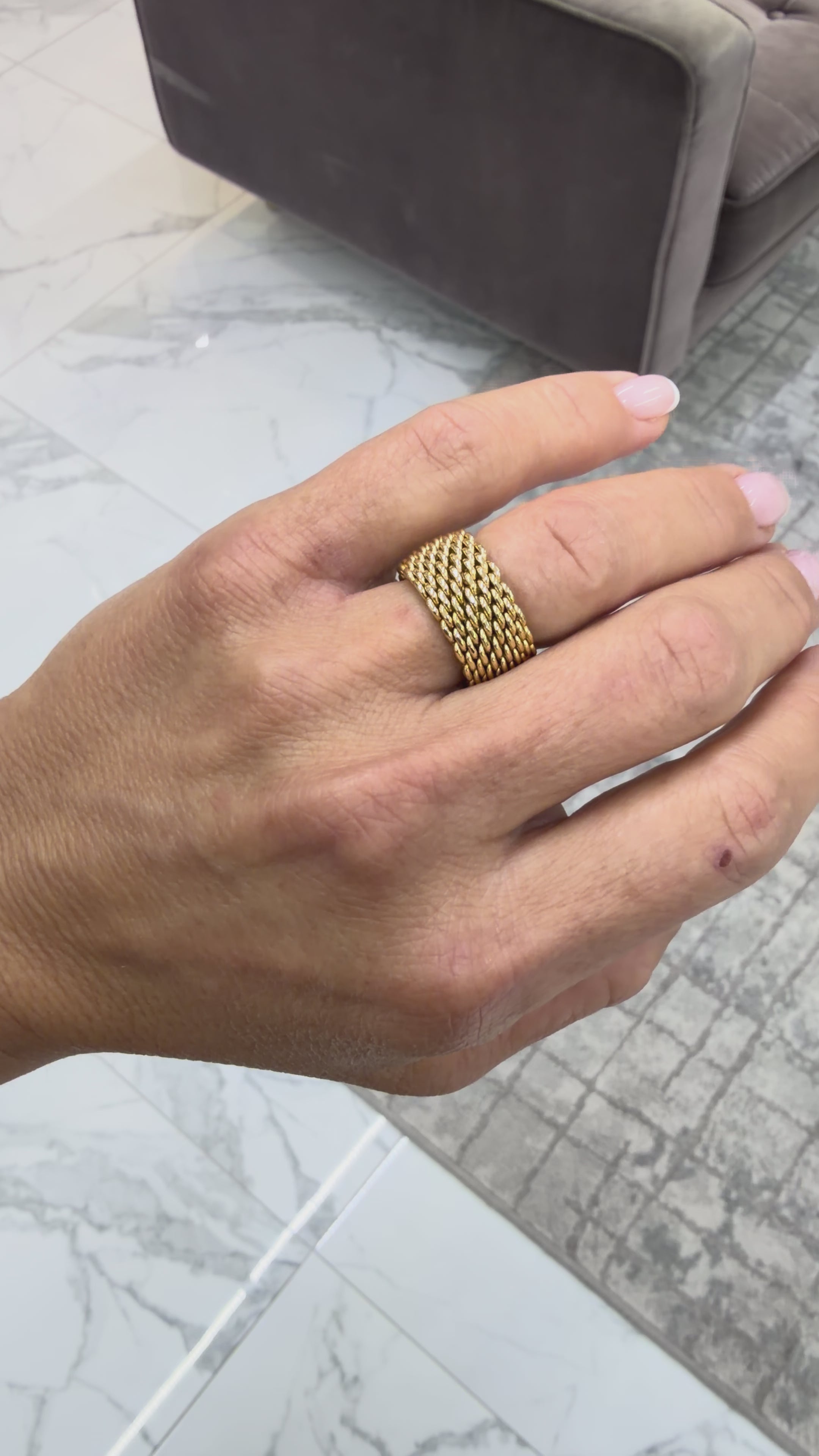 Ladies Tiffany & Co. 18K Yellow Gold Wide Somerset Mesh Band Ring