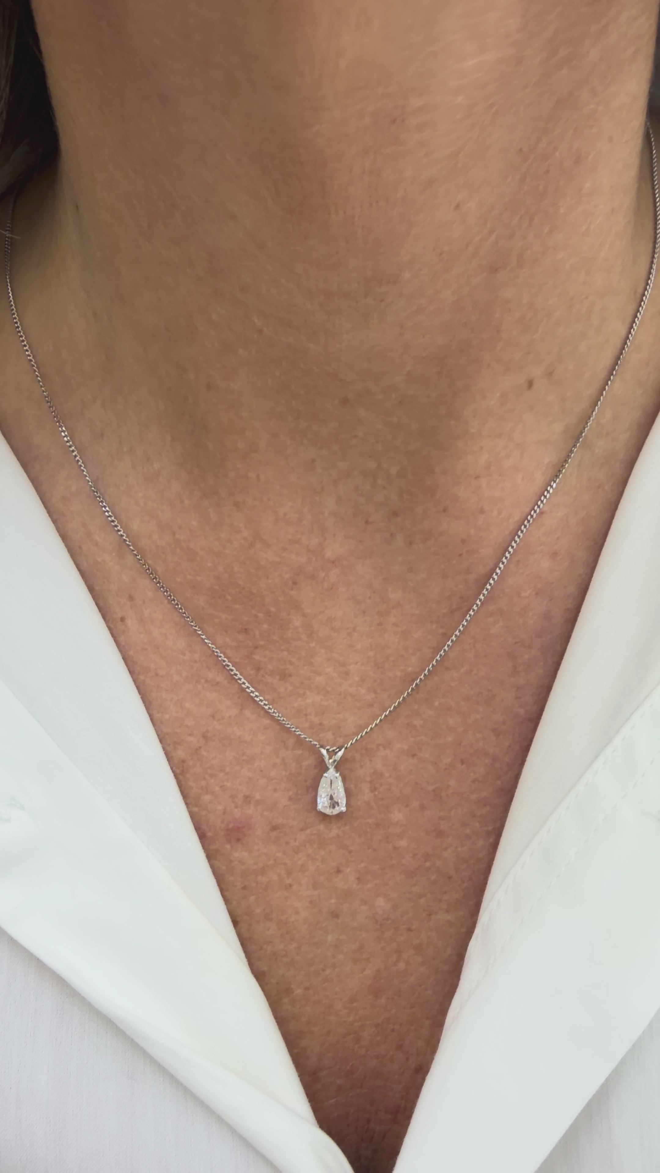 14K White Gold Antique Cut 0.50ct Pear Shape Diamond Solitaire Pendant Necklace