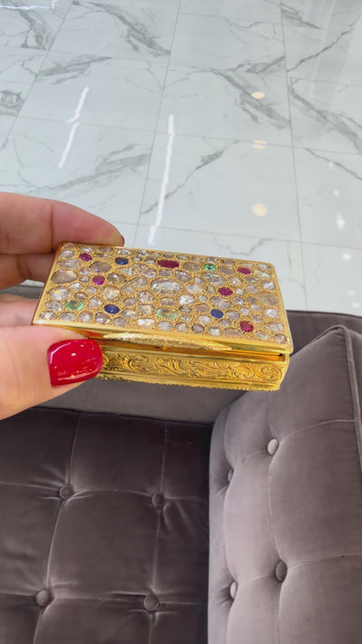 18K Yellow Gold antique diamond, sapphire, emerald and ruby Box.