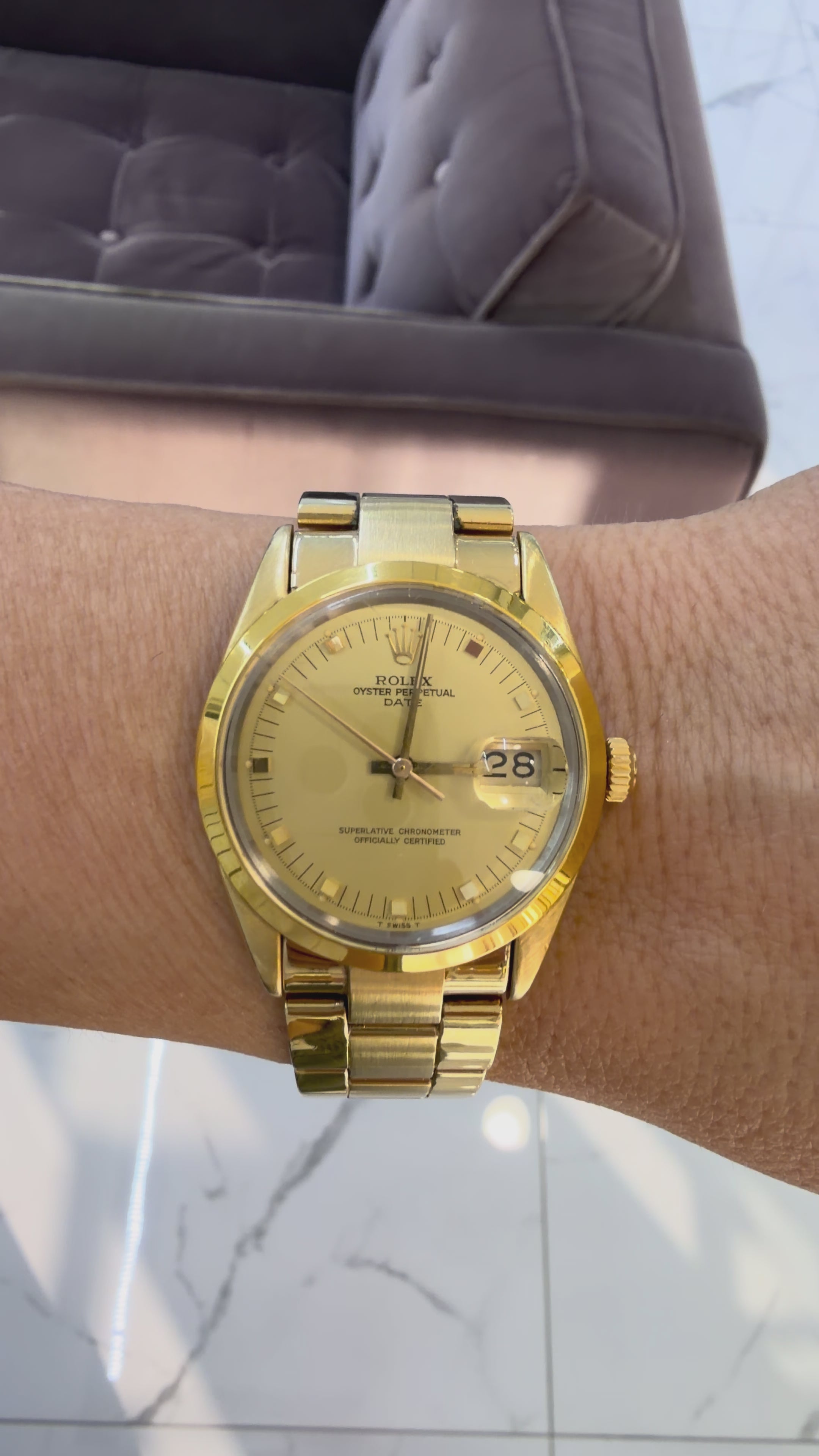 Vintage Rolex Oyster Perpetual Date 34MM 15505 Door Stop Gold Plated Steel Watch