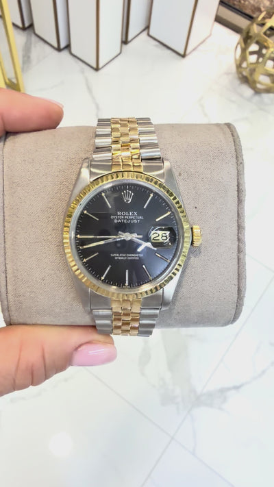 Rolex Datejust 36MM 16000 Black Dial Jubilee Fluted Gold Steel Watch