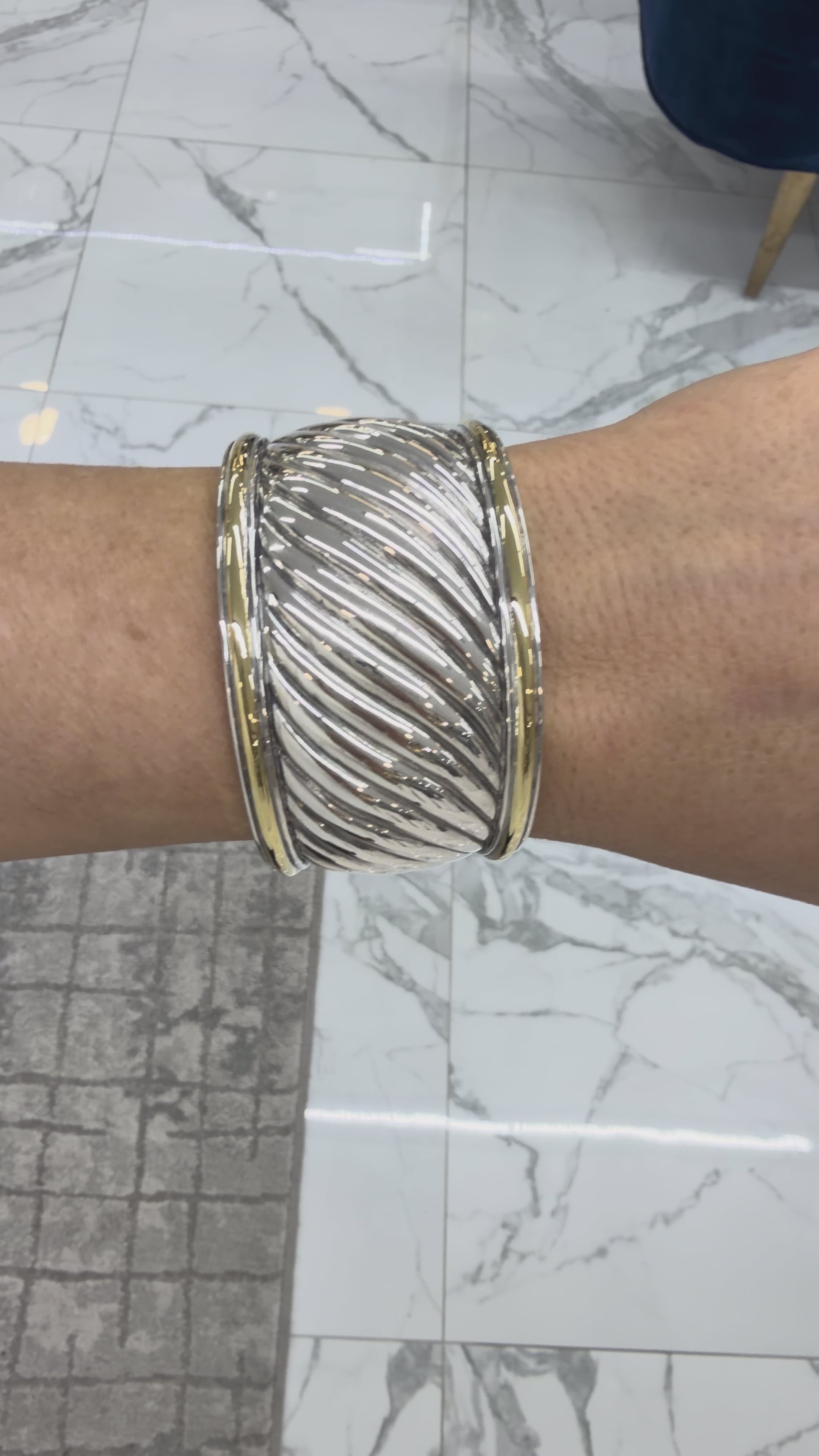 David Yurman 18K Yellow Gold Silver Two-Tone Sculpted Cable Cuff Bangle Bracelet