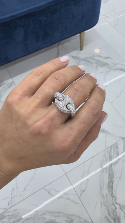 Men’s 18K White Gold 1.90ct Micro Pave Diamond Mariner Gucci Link Band Ring