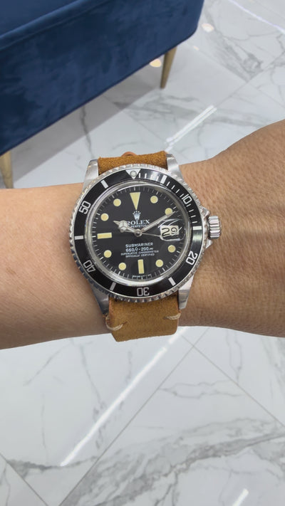 Vintage Rolex Submariner Date 40MM 1680 Brown Buttery Yellow Lume Steel Watch
