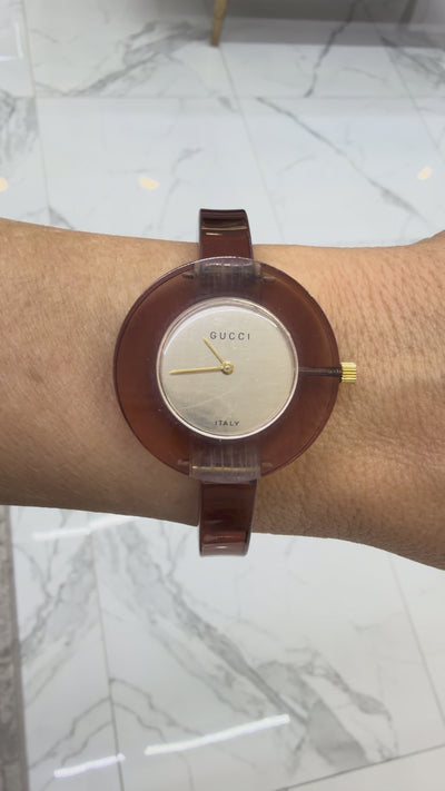 Ladies Vintage Pink Gucci Lucite 35MM Bangle Manual Wind Watch